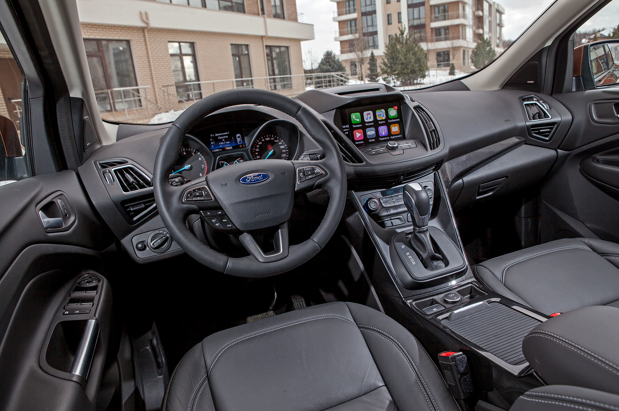 Полуторалитровый EcoBoost мощностью 150 сил тянет неплохо, хотя начальный отклик на газ даже в спортрежиме слегка задушен. При переходе на пару передач вниз шестиступенчатый «автомат» берёт заметную паузу. Раздражает громкий рёв мотора и повышенный аппетит: 13,2 л/100 км «девяносто пятого». Результат азиатов: 11,4−11,7 л на сотню, немца — 10,7. В Кугу можно лить и АИ-92, но, во-первых, расход увеличивается, а во-вторых, свежи в памяти проблемы с детонацией у двухлитровых Экобустов. Не понравилась и настройка тормозов: дозировать замедление неудобно.