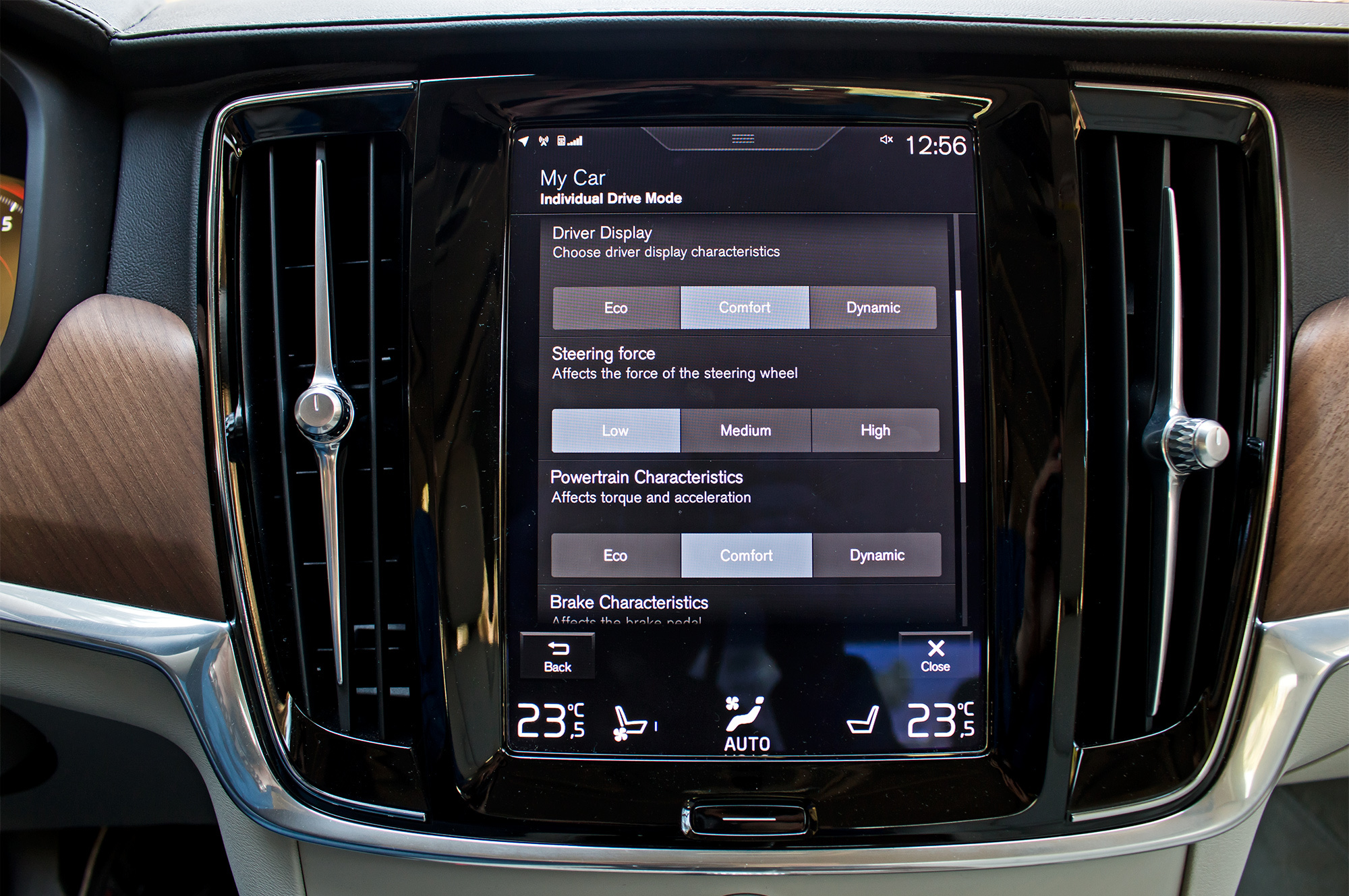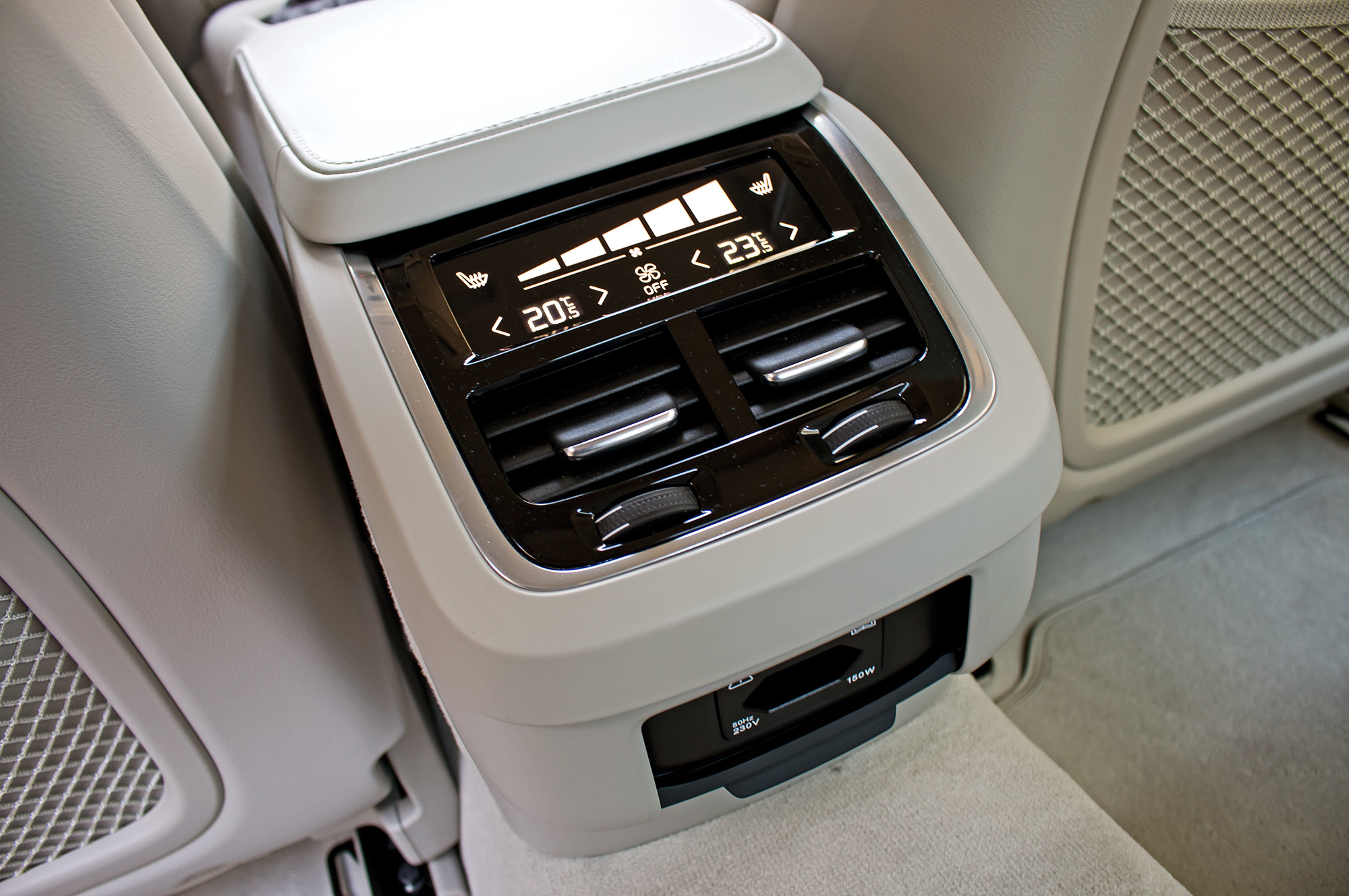 С опциональными двойными стёклами спереди и сзади салон S90 отлично изолирован от внешней среды. Не считая разгонных неблагозвучий бензиновых моторов, акустический комфорт нарушается лишь средой внутренней. Стоит водителю с пассажиром натыкать на сенсорном экране климат-контроля температуру с разницей градуса в два−три, как вентилятор заводит шумную арию минут на двадцать, а через непродолжительную паузу её повторяет. Не молчит и вентиляция передних кресел, если выбран второй или третий уровень интенсивности из трёх.