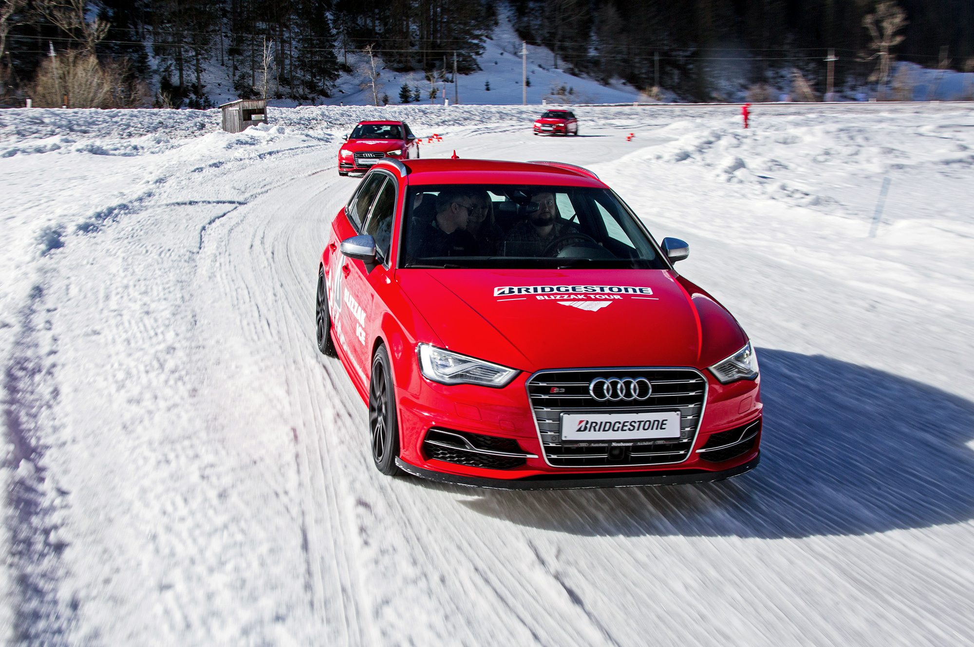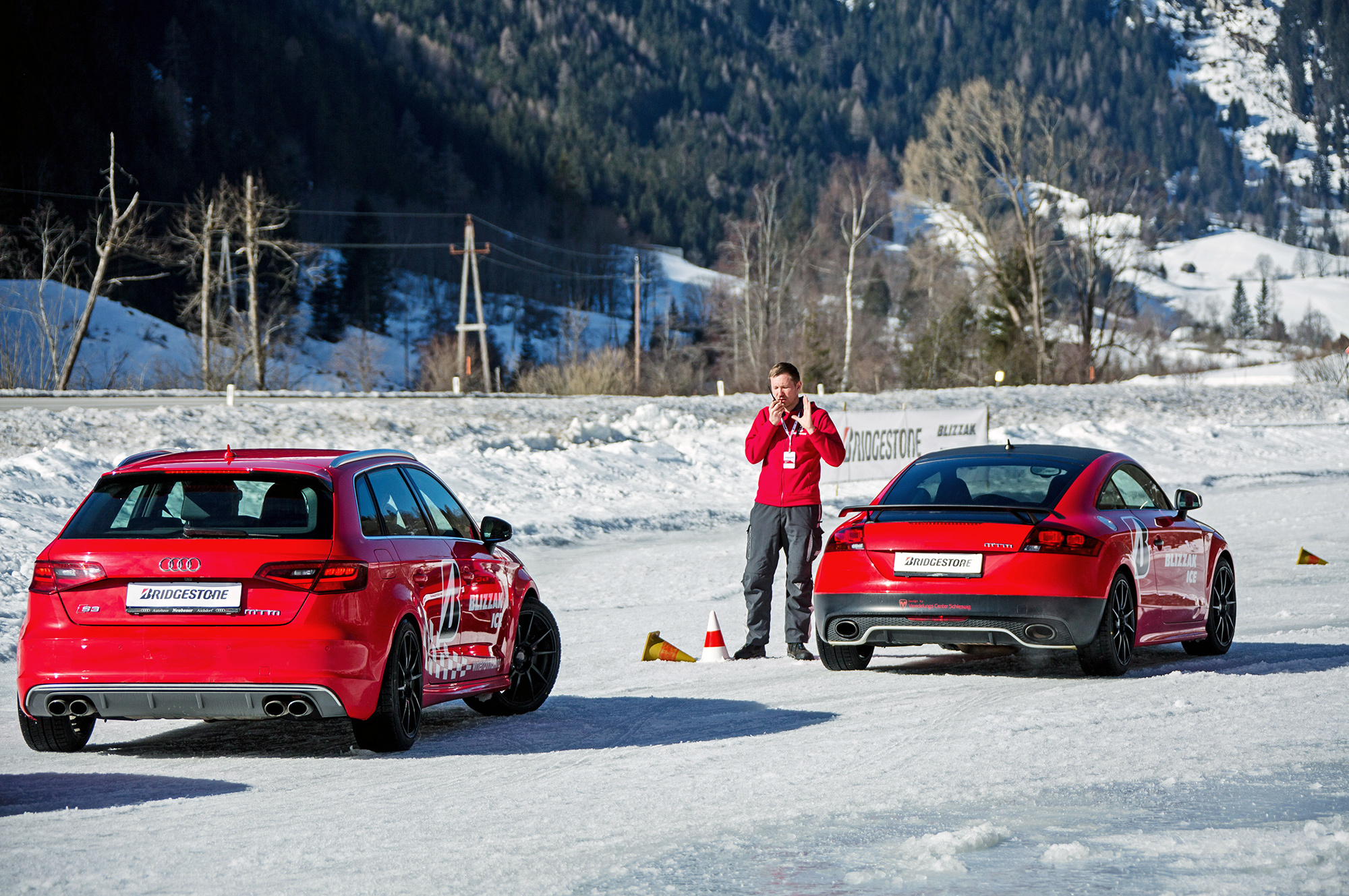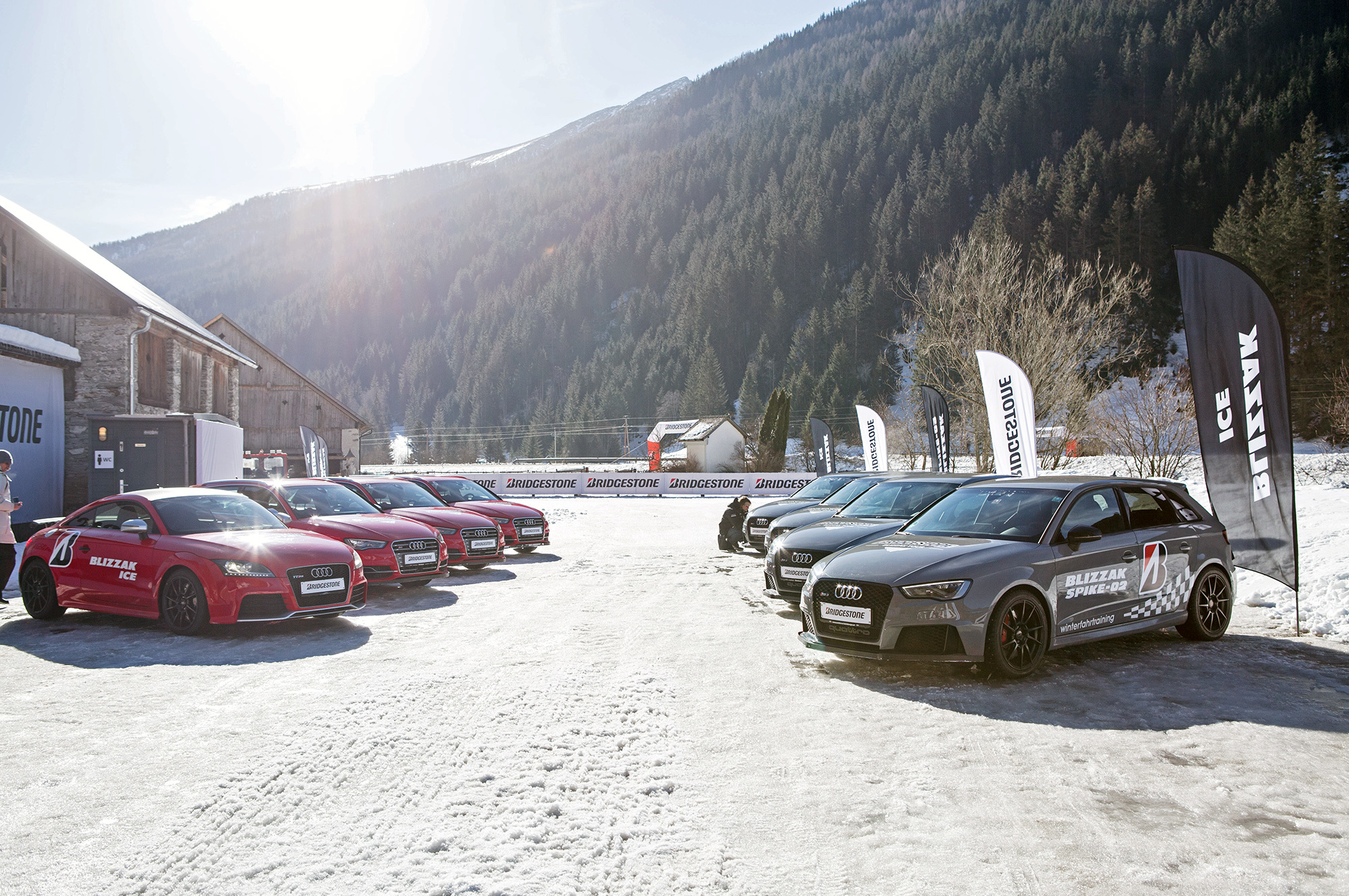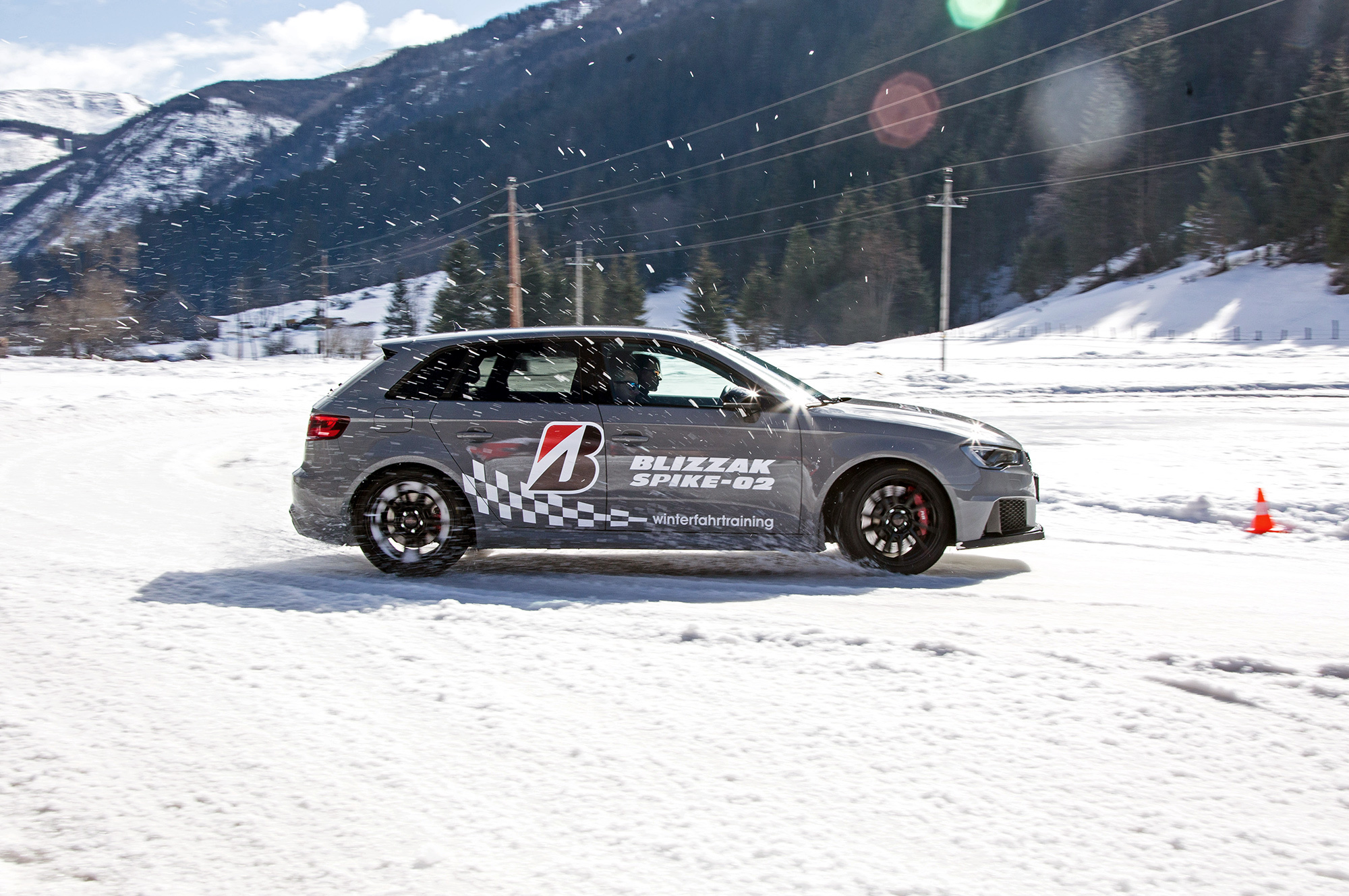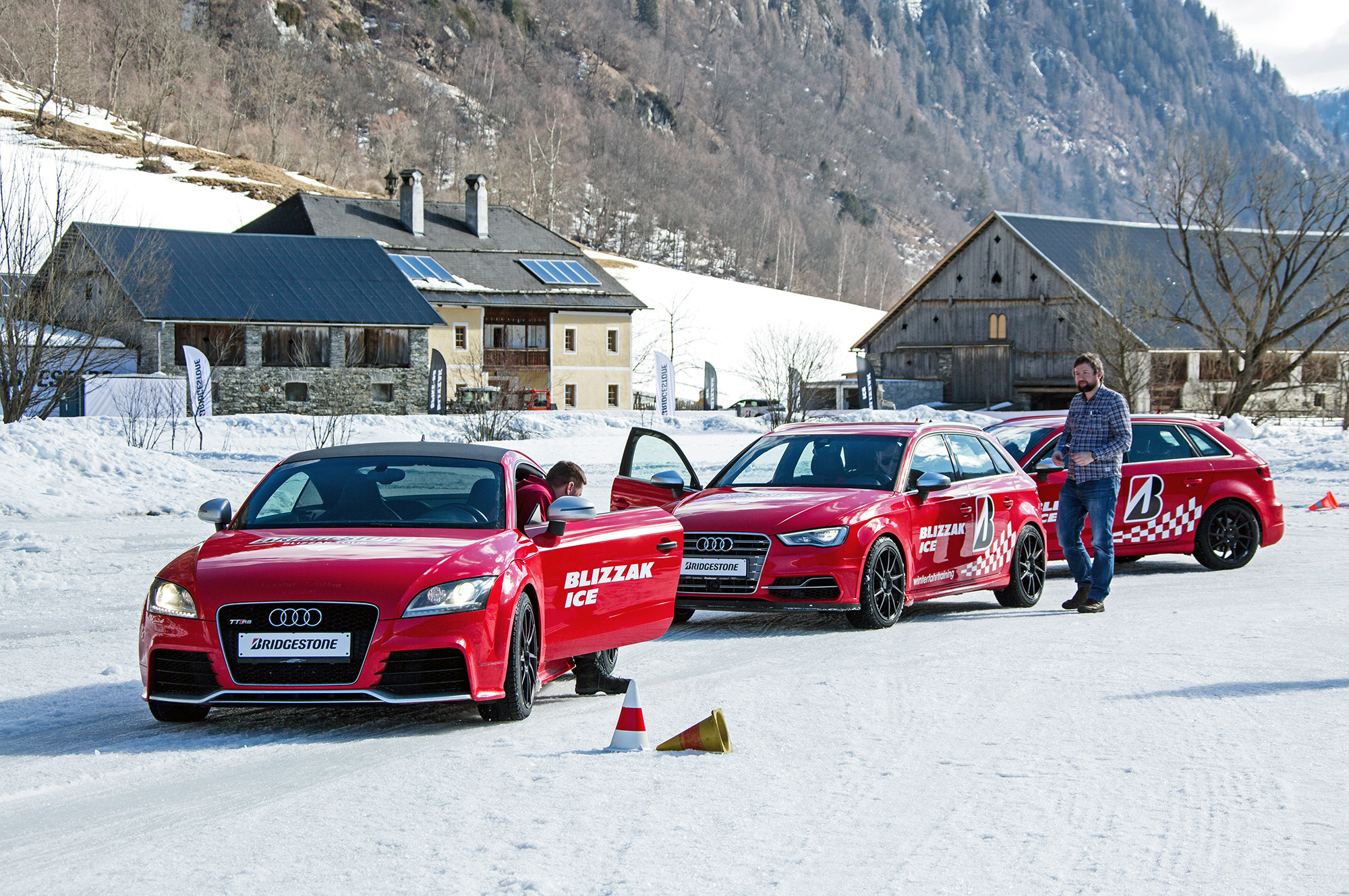 Теоретически в линейке присутствует и недорогая шиповка IceCruiser 7000S (не из семейства Blizzak). Её недавно модернизировали, чтобы уменьшить потери шипов в эксплуатации. Добавочная буква S в индексе означает более жёсткую резиновую смесь и изменённую форму шипов. Но миссия этой шины — создавать фон, чтобы представленные на тесте модели можно было назвать «премиальными». В любом случае на журналистские испытания в Альпы не привезли ни её, ни конкурентов. Австрия встречает отлично подготовленными снежно-ледовыми трассами ― увы, стремительно тающими при околонулевой температуре.