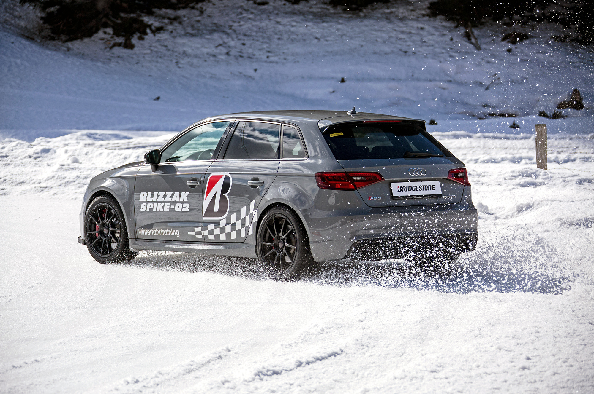 Обутый в Spike-02 хэтчбек Audi RS3 расслабиться не даёт. Разгон и торможение вполне адекватны, хотя чувствуется недошиповка. Берусь утверждать, что когтистый Michelin X-Ice North 4 останавливался бы на таком покрытии раньше. В повороте ― долгий и глубокий занос задней оси. Даже на ровном газу в вираже корма Audi с отключённой системой стабилизации уплывает с траектории, и если не шуровать рулём, разворот неизбежен. Возможно, виновата и машина. Судя по шильдикам ателье МТМ, тестовый RS3 оборудован более жёсткой муфтой подключения заднего привода, чем штатный Haldex. Но получившийся ансамбль годится разве что для тренировки зимнего дрифта.