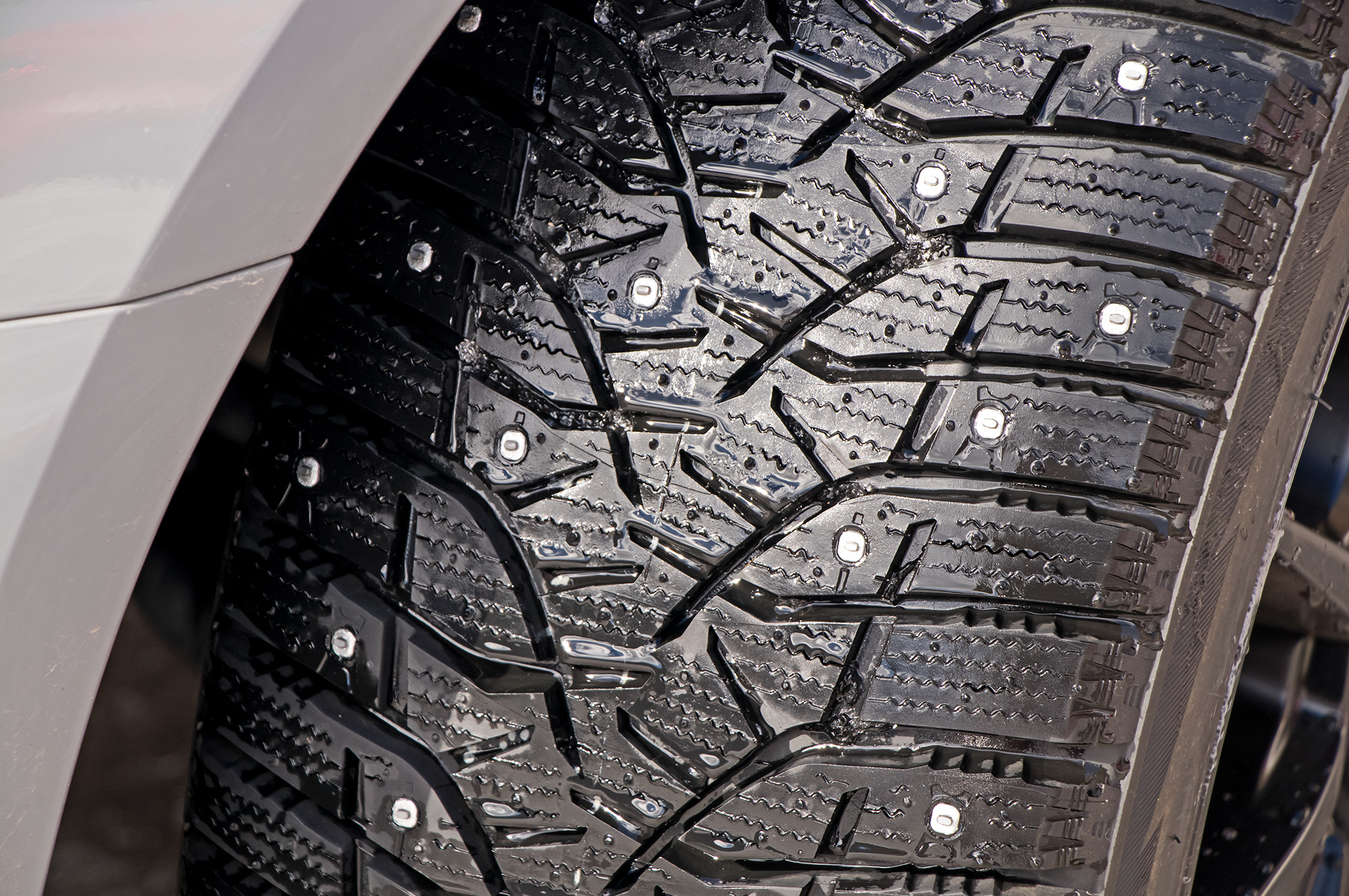 В отличие от большинства конкурентов, Bridgestone не гонится за увеличением количества шипов. Соблюдение нормы максимум 60 штук на погонный метр протектора позволяет не связываться с тестом на износ покрытия (over-run). Характерный шип у модели Spike-02 снабжён овальным твердосплавным сердечником, ориентированным поперёк направления качения. Получается, что в продольном направлении работает самая широкая сторона «когтя», что должно дать хорошие тормозные и разгонные свойства. А что обеспечивает поперечное сцепление?