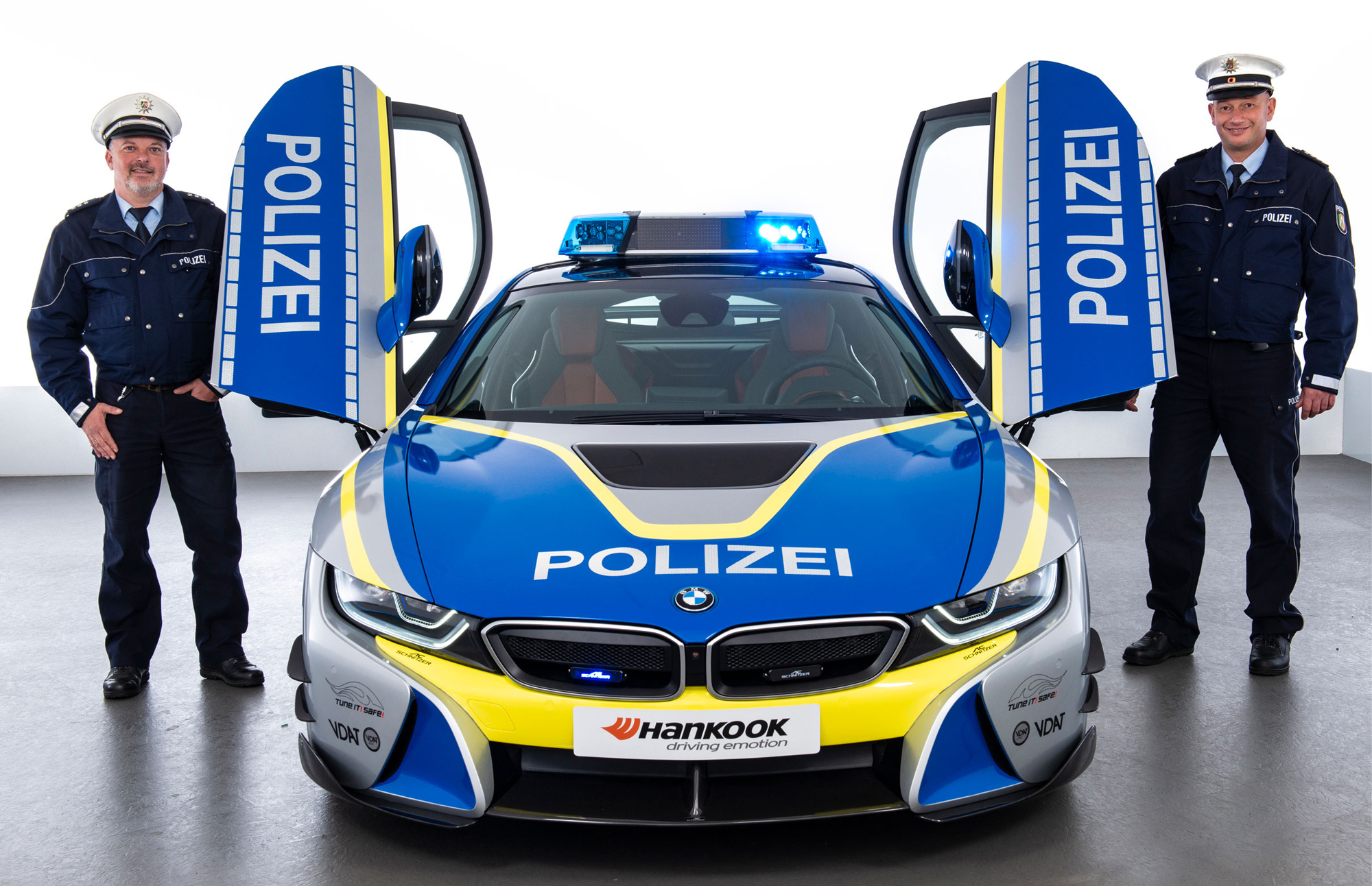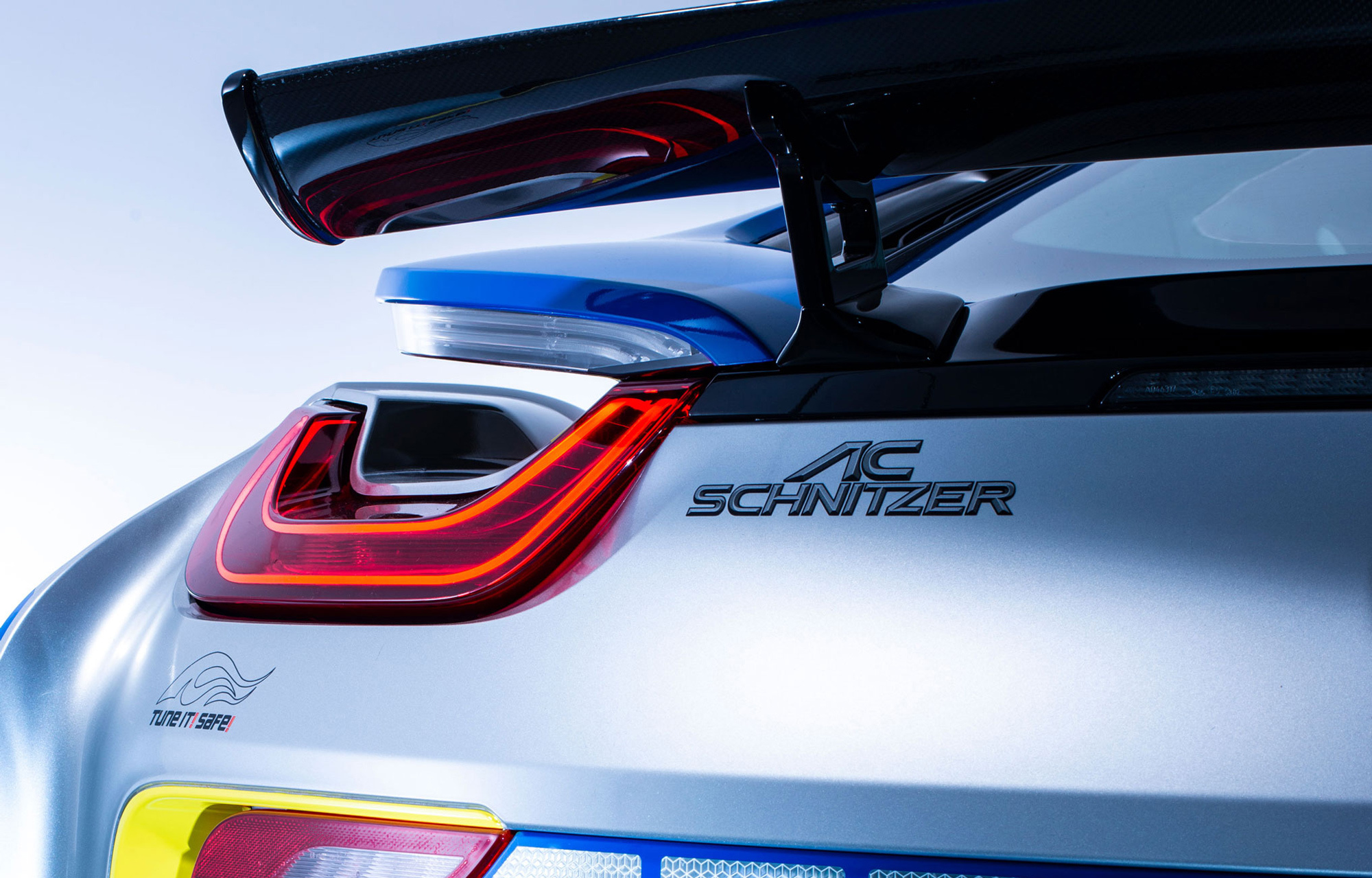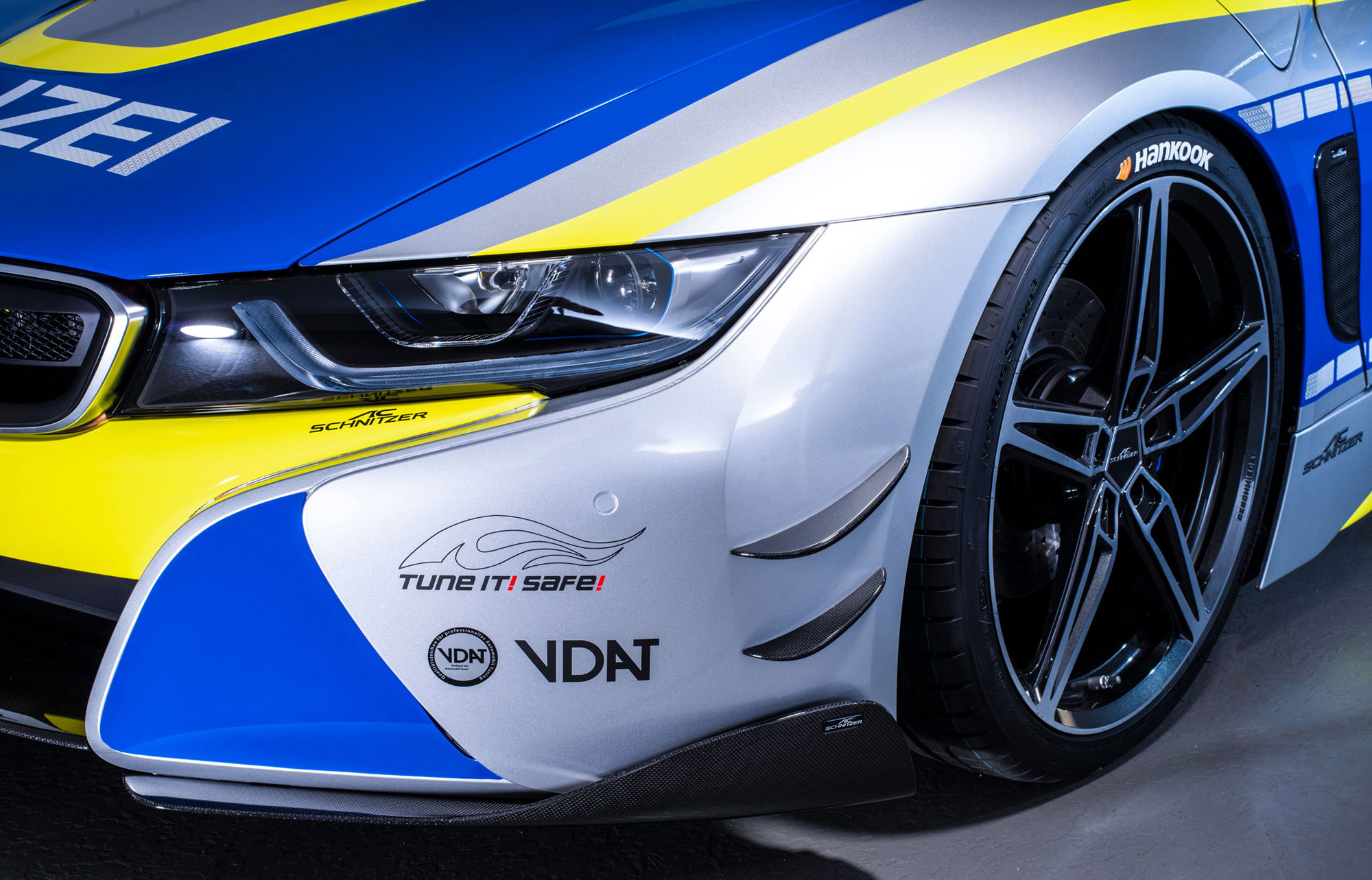 Полное наименование этого шедевра — Police BMW i8 TUNE IT! SAFE! by AC Schnitzer. Выделенный прописными буквами призыв к безопасному тюнингу — название инициативы Немецкой ассоциации автомобильных тюнеров VDAT, поддерживаемой министерством транспорта Германии. В рамках этого проекта VDAT сотрудничает с разными ателье для популяризации грамотного тюнинга и, соответственно, борьбы с небезопасным и нелегальным. Ну а компания AC Schnitzer далеко не первый раз обращается к гибриду BMW i8: можно припомнить пару примеров (первый, второй) только за последний год с небольшим.
