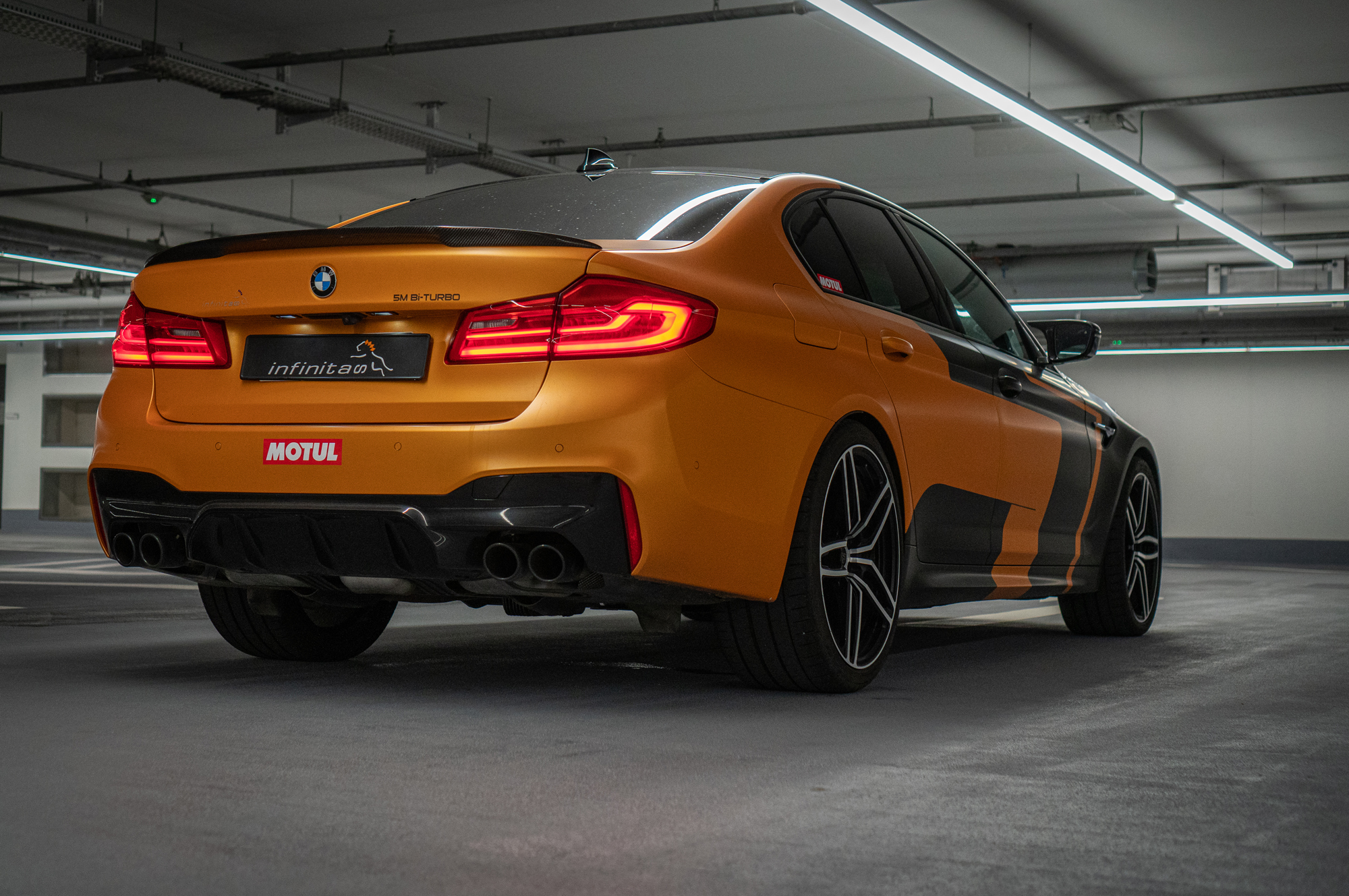Модель Hurricane 2 основана на современном седане M5 F90. В исходном виде его битурбомотор V8 4.4 выдаёт 600 л.с. и 750 Н•м (в версии Competition — 625 л.с.). Вмешавшись в турбокомпрессоры, программу управления, систему охлаждения, выхлопную систему, infinitas получила мощность свыше тысячи сил и максимальный крутящий момент более 1200 Н•м. Есть некие доработки в приводе.