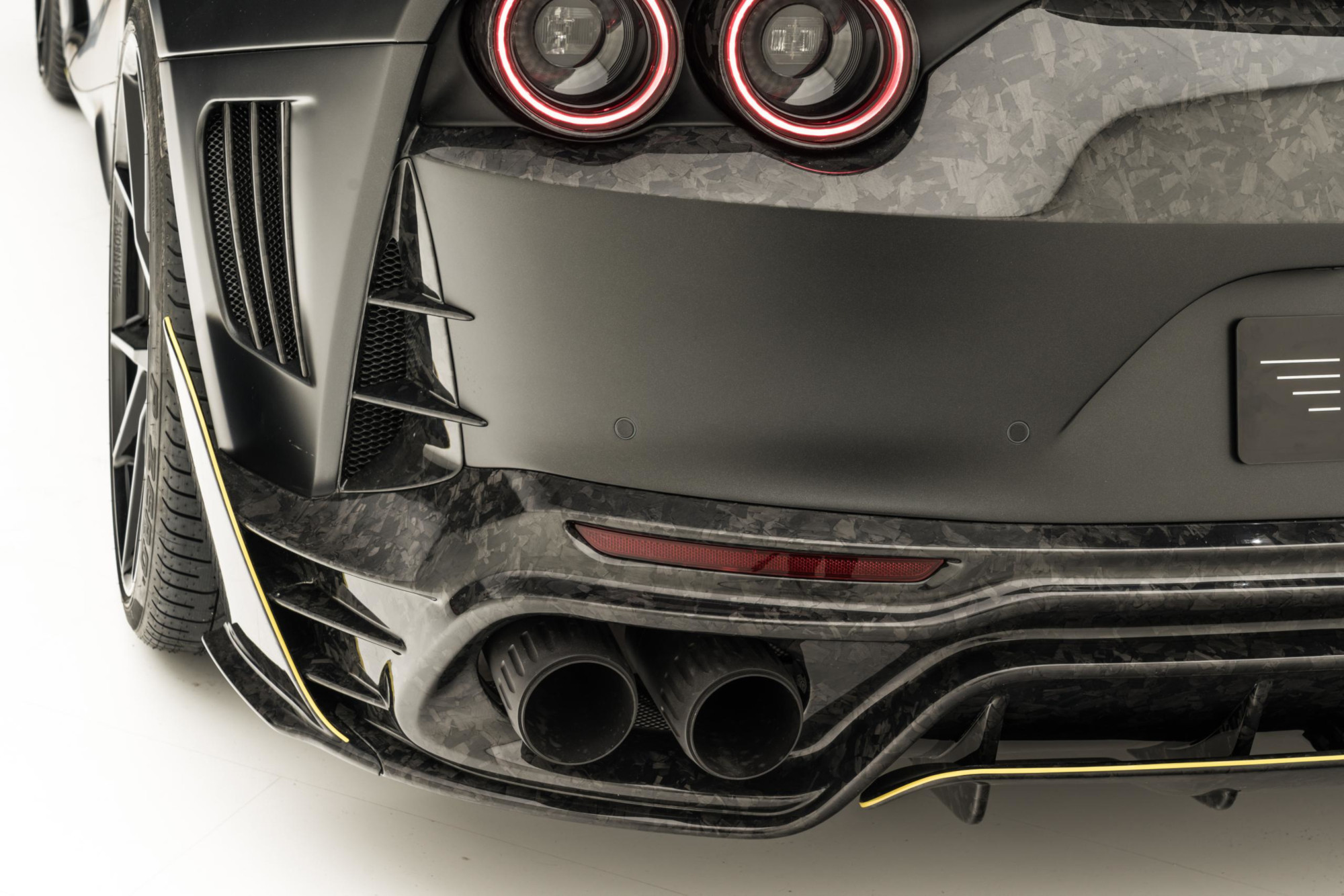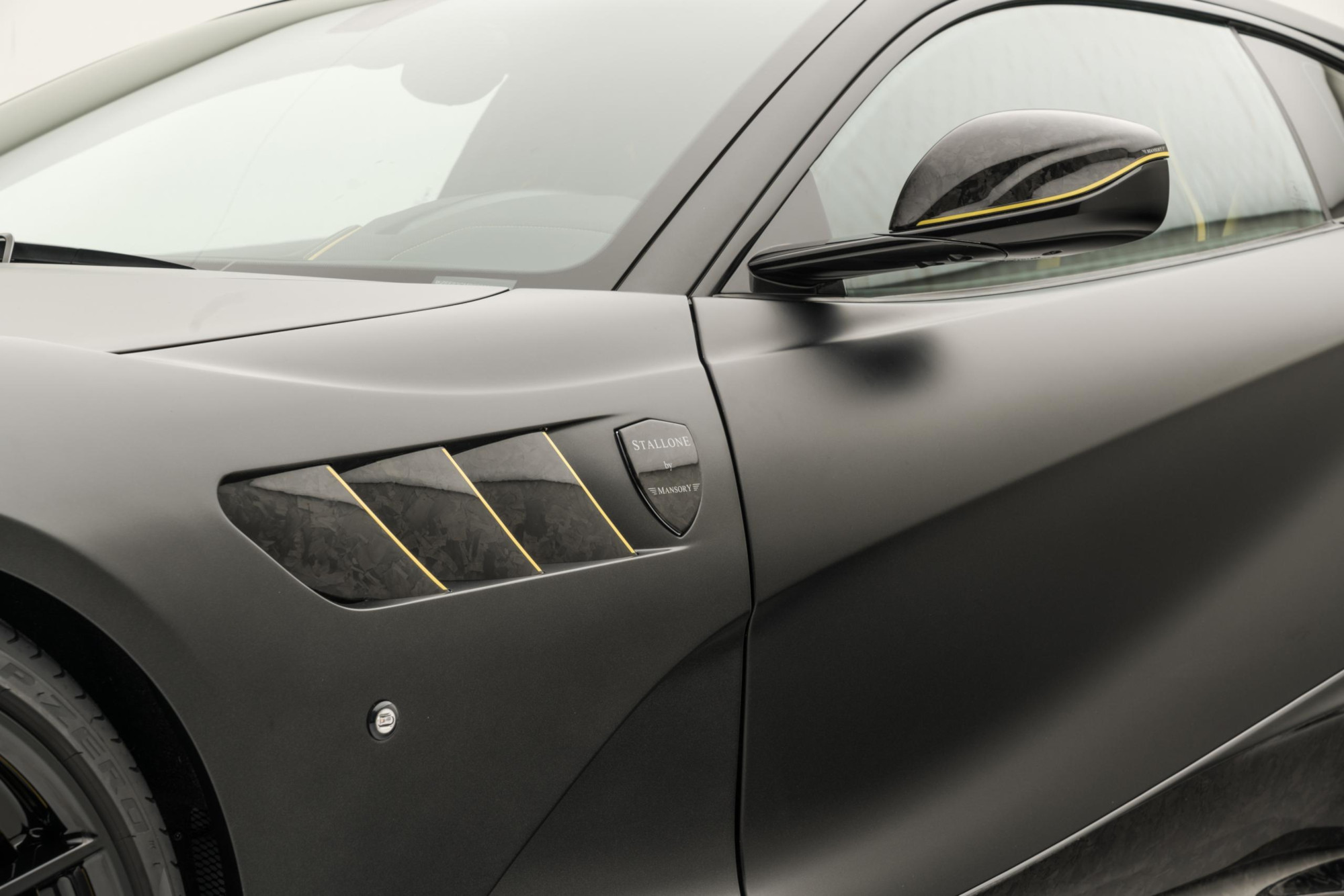 Впрочем, если клиент сочтёт Softkit слишком скромным апдейтом для купе 812, можно обратить взор на другой новый набор, Stallone 812/Stallone 812 Black (чёрный образец на снимках), который Mansory подготовила к отменённому мартовскому Женевскому автошоу. Здесь и агрессивности в экстерьере куда больше, и есть сразу несколько вариаций аэродинамического обвеса (сзади можно поставить небольшой спойлер или крупное антикрыло). Также в комплекте Stallone идут нестандартные детали интерьера, а главное — всё это сопровождается перенастройкой мотора. Новые софт и компоненты выхлопной системы позволили получить 830 л.с. и 740 Н•м. Неплохая прибавка для атмосферного двигателя.