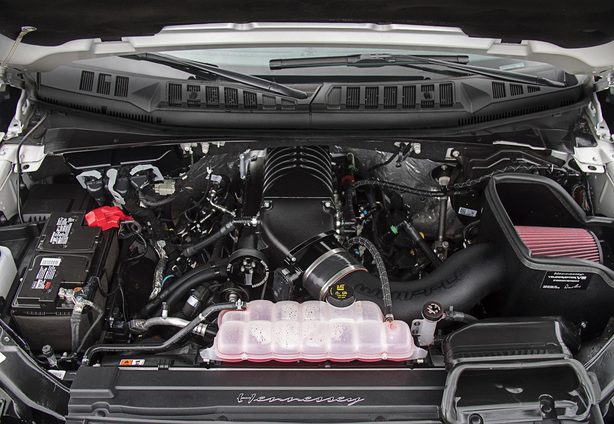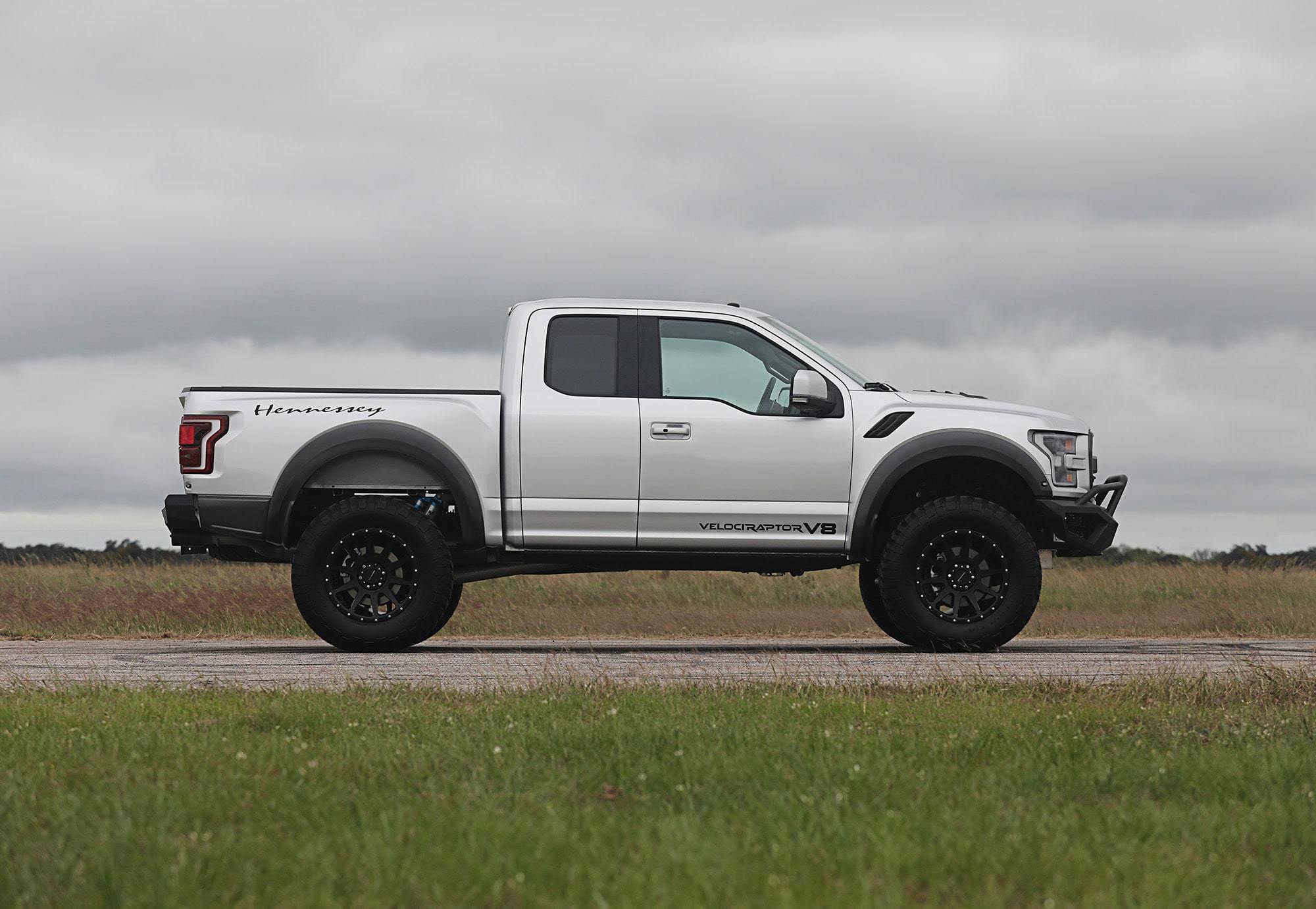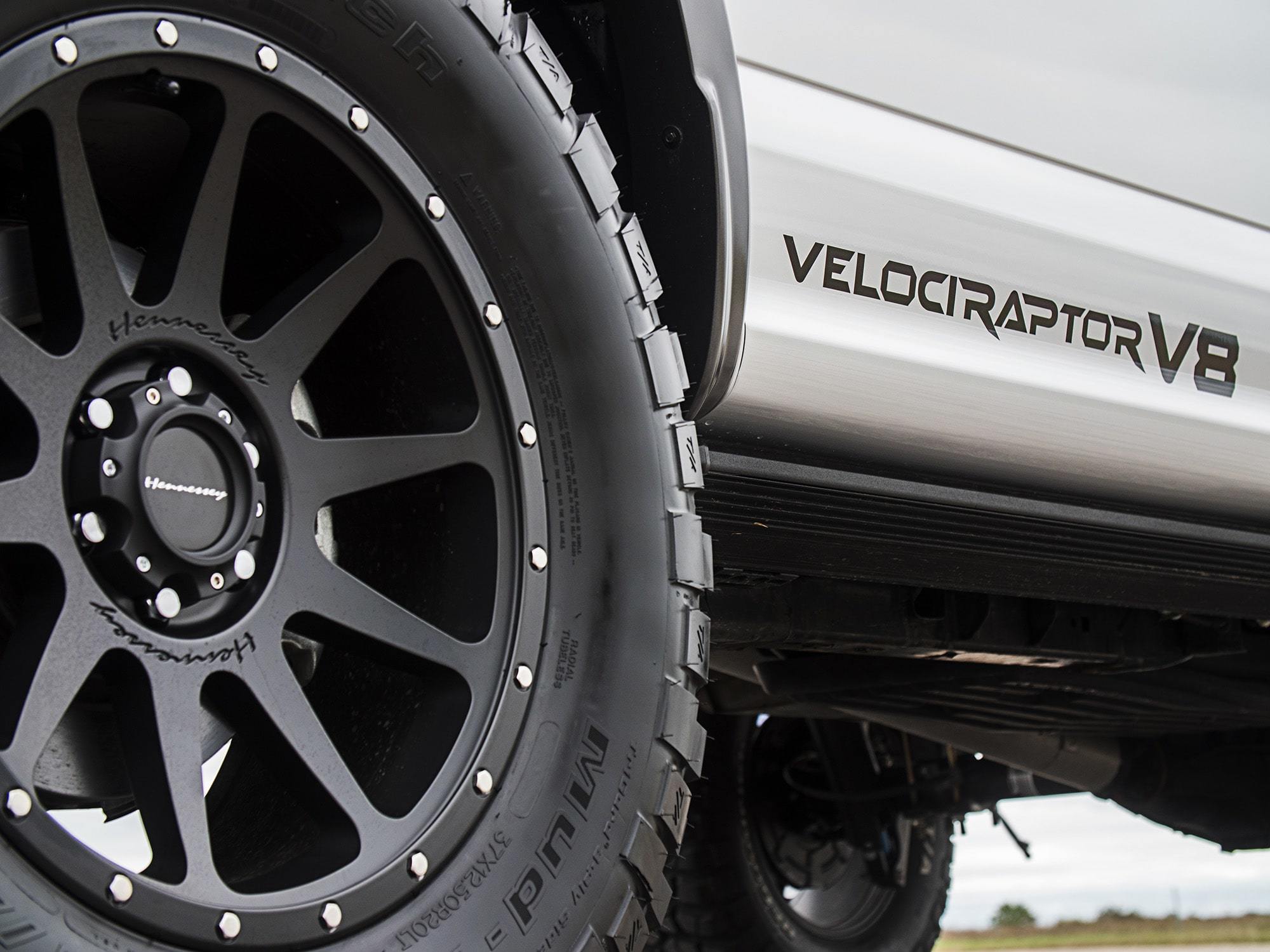 Полное название новичка, представленного на шоу SEMA, — 2019 Hennessey VelociRaptor V8. Автомобиль основан на модели Ford F-150 Raptor, однако её штатный мотор (V6 EcoBoost 3.5, 462 л.с. и 690 Н•м) не форсирован, а просто заменён на «восьмёрку» 5.0, к которой добавлен приводной компрессор объёмом 2,9 л. Отдача такого агрегата составляет 768 л.с., ровно столько было и на недавно представленном пикапе Hennessey Heritage F-150.