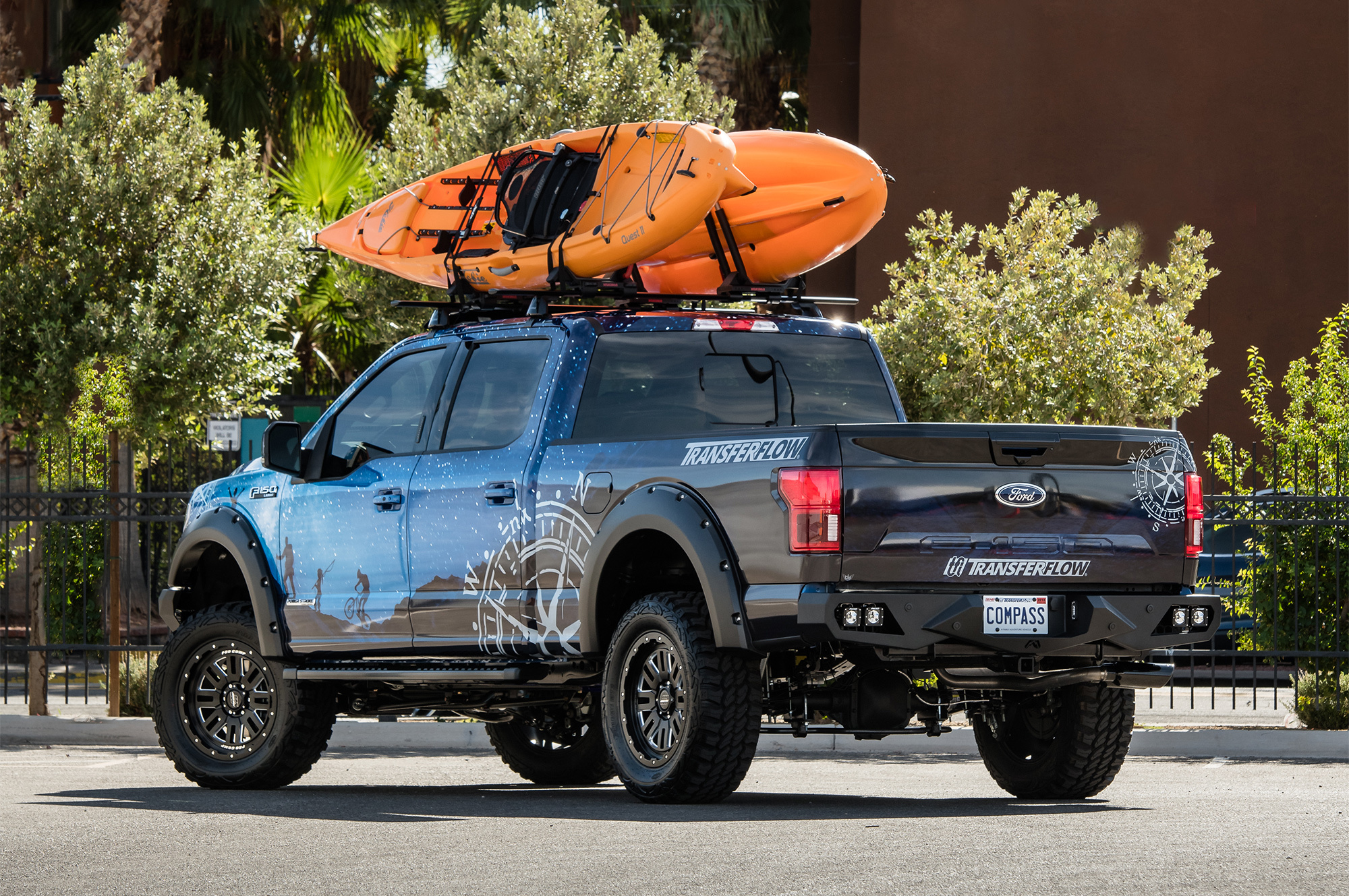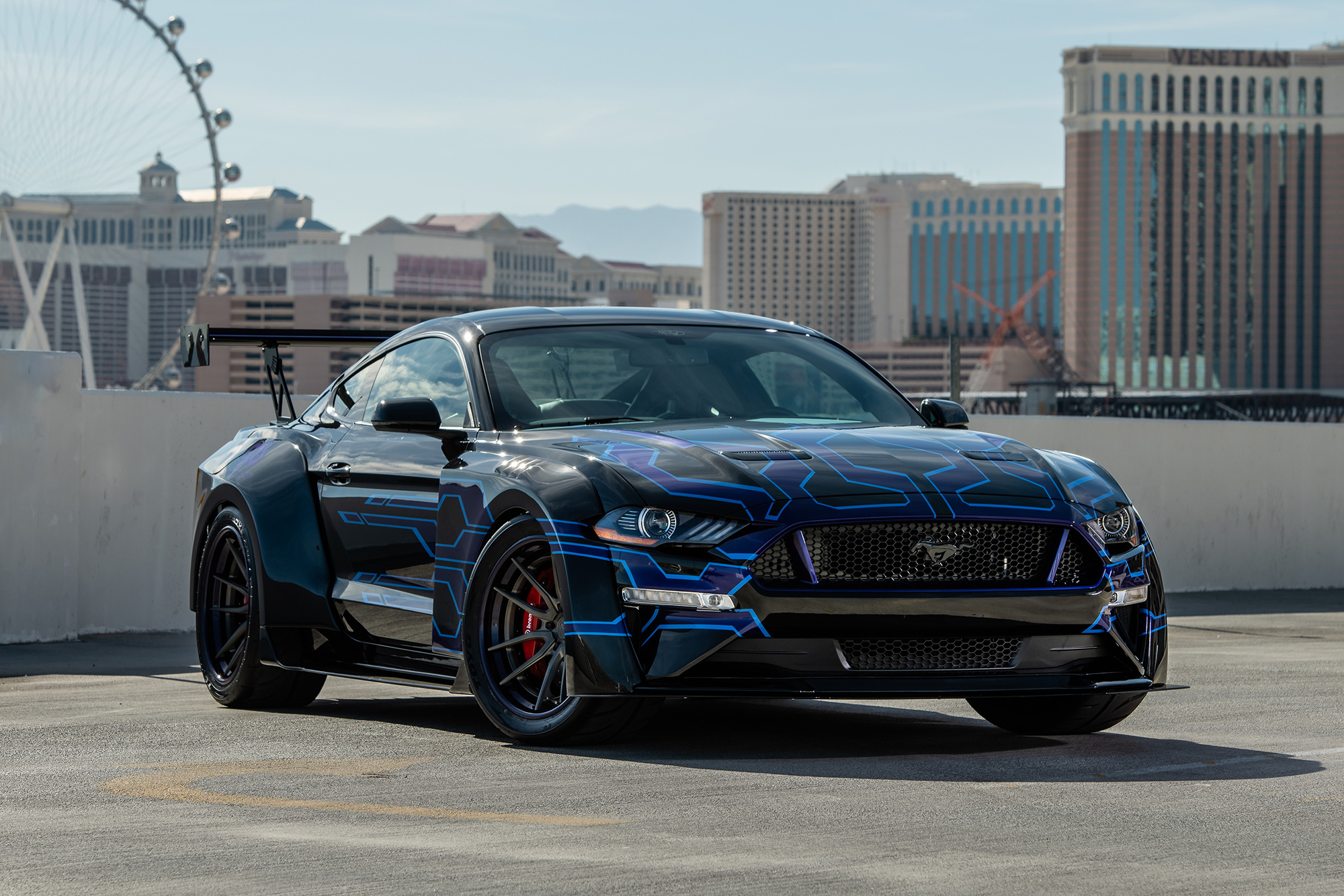 Сначала уточним: в кооперации с разными партнёрами фирма Ford десантировалась на шоу SEMA с более чем полусотней машин. Детально описывать их все мы не будем (но в нашем «Крупном плане» вы можете подробно рассмотреть самые интересные). Однако некоторые яркие образцы разберём. Тем более что три фордовские модели получили от организаторов выставки сразу четыре титула: F-150 — «Пикап года», Focus (в США продаётся ещё прошлый) — «Спорткомпакт года», а Mustang — «Спорткупе года» и «Автомобиль года». (Один значимый приз, «Внедорожник года», ушёл к соперникам, его завоевал Jeep Wrangler.)