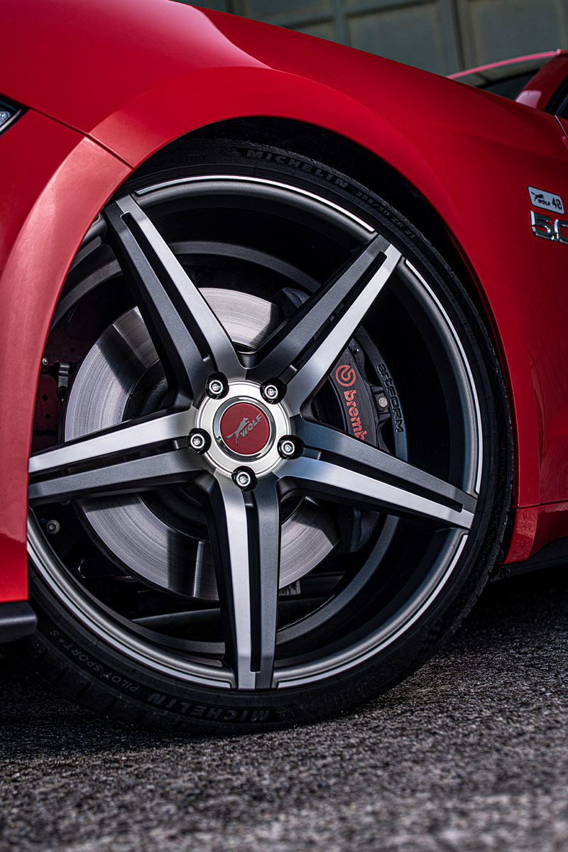 За ещё более экстремальным Мустангом можно обратится к ателье Hennessey. В его программе есть пакет доработок для модели Mustang Shelby GT350 с атмосферником 5.2 (533 л.с. и 582 Н•м в заводской версии). После установки приводного нагнетателя вместе с изменёнными системами впуска и впрыска топлива на выходе получаются 870 «лошадей» и 912 Н•м. Они позволяют Мустангу набирать 60 миль/ч (97 км/ч) с места за 3,3 с. Бюро Hennessey анонсировало и предстоящие доработки для Shelby GT500. Так что ателье Wolf Racing ещё есть куда расти к своему следующему юбилею.