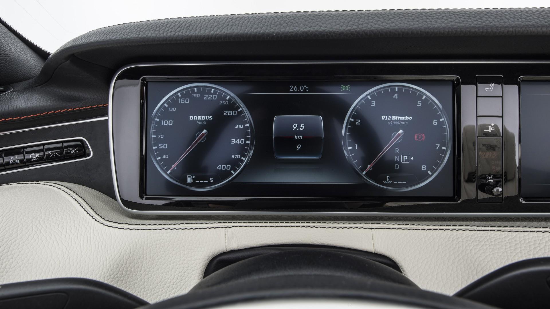 Мотор V12 6.3 с двойным турбонаддувом, по образцу ранее показанных старших седанов от Брабуса, форсирован до 900 л.с. и 1500 Н•м (на стенде). В самой машине ради сохранности трансмиссии момент ограничен электроникой на уровне 1200 Н•м. Для сравнения, в исходной модели было 630 л.с. и 1000 Н•м, снятых с шести литров.
