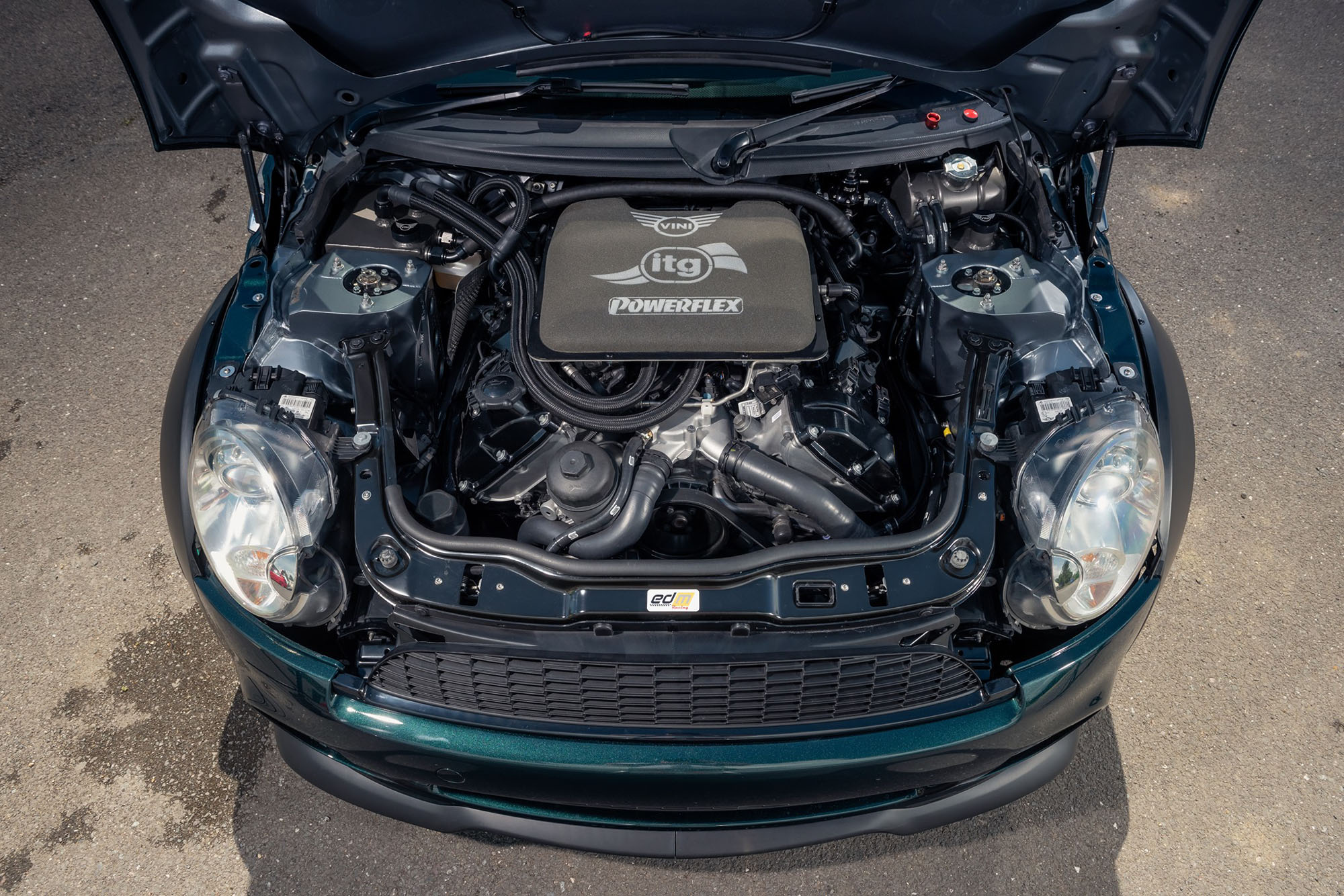 Британская компания Powerflex выпускает различные автокомпоненты, в первую очередь сайлент-блоки и детали крепления подвески для разных марок и моделей. На Фестивале скорости в Гудвуде 2021 она решила обратить на себя внимание необычным проектом: при помощи ряда партнёров из британской ассоциации поставщиков комплектующих Performance Automotive Aftermarket Association компания построила хэтчбек Mini (R56) с высокооборотным атмосферником V8 4.0 S65 от BMW M3 серии E9x (2007–2013 годов). От «эмки» Mini вживили и семиступенчатый «робот» M-DCT, и задний привод. А полученного монстра назвали Vini (то есть комбинацией Mini c V8).