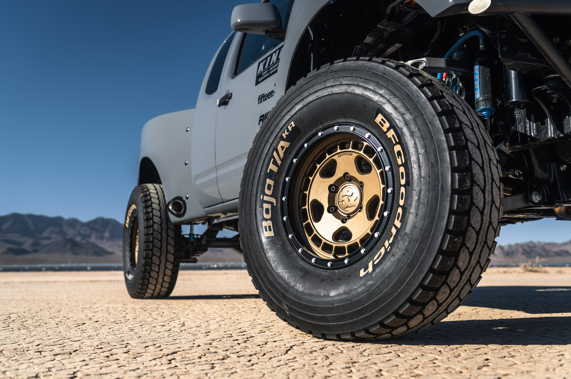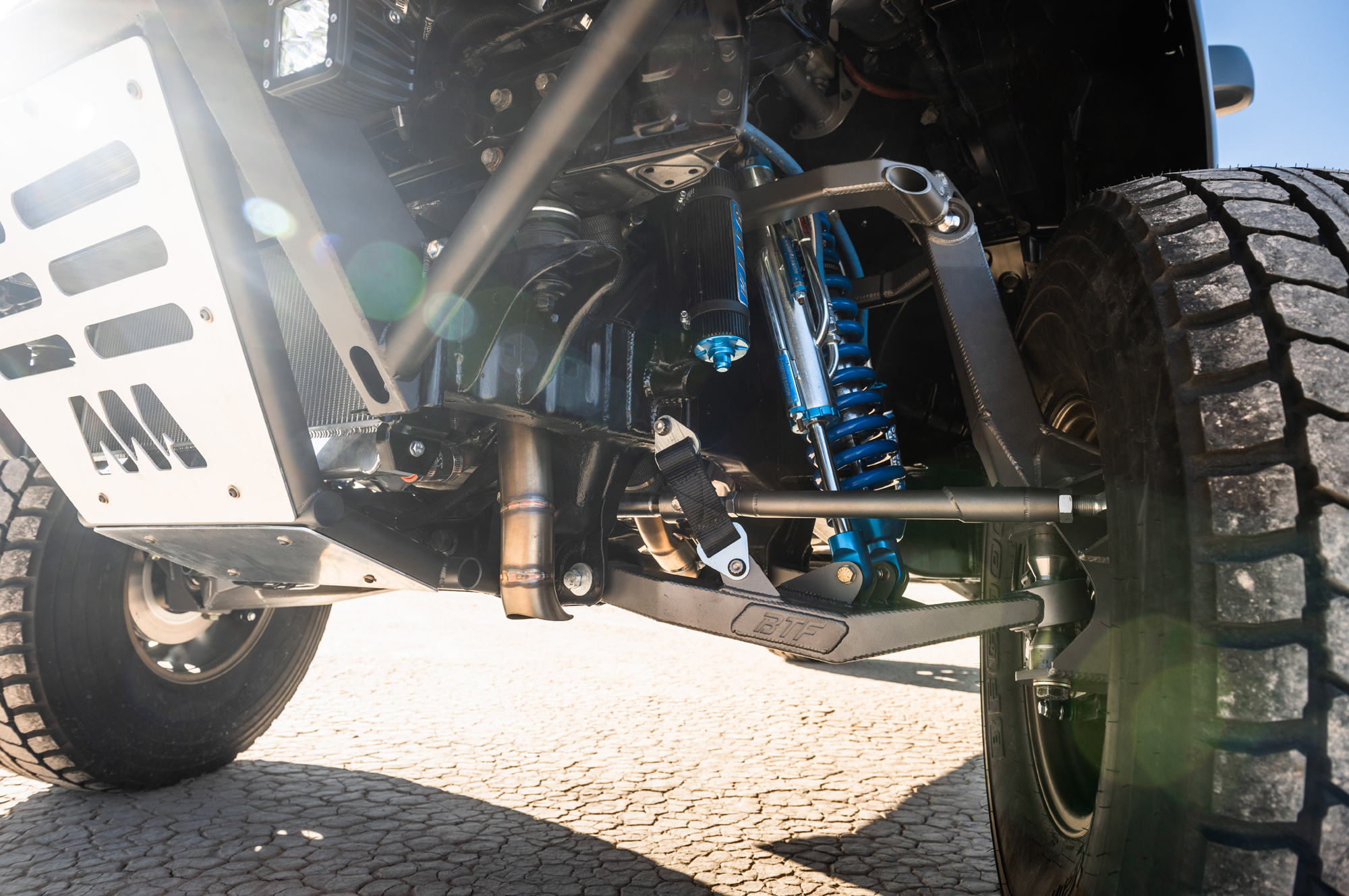 Помимо замены двигателя, которому в пару отрядили шестиступенчатую «механику» Nissan со сцеплением от Jim Wolf, инженеры и техники установили на машину длинноходную переднюю подвеску от компании BTF Fabrication с блоками типа coil-over и амортизаторами King Racing Triple Bypass. Задняя подвеска получила аналогичные амортизаторы и рессоры Giant Motorsports Link Killer. Дополнили этот комплект изменений в шасси колёса Fifteen52 TurboMac HD и 37-дюймовые шины BFGoodrich Baja T/A.