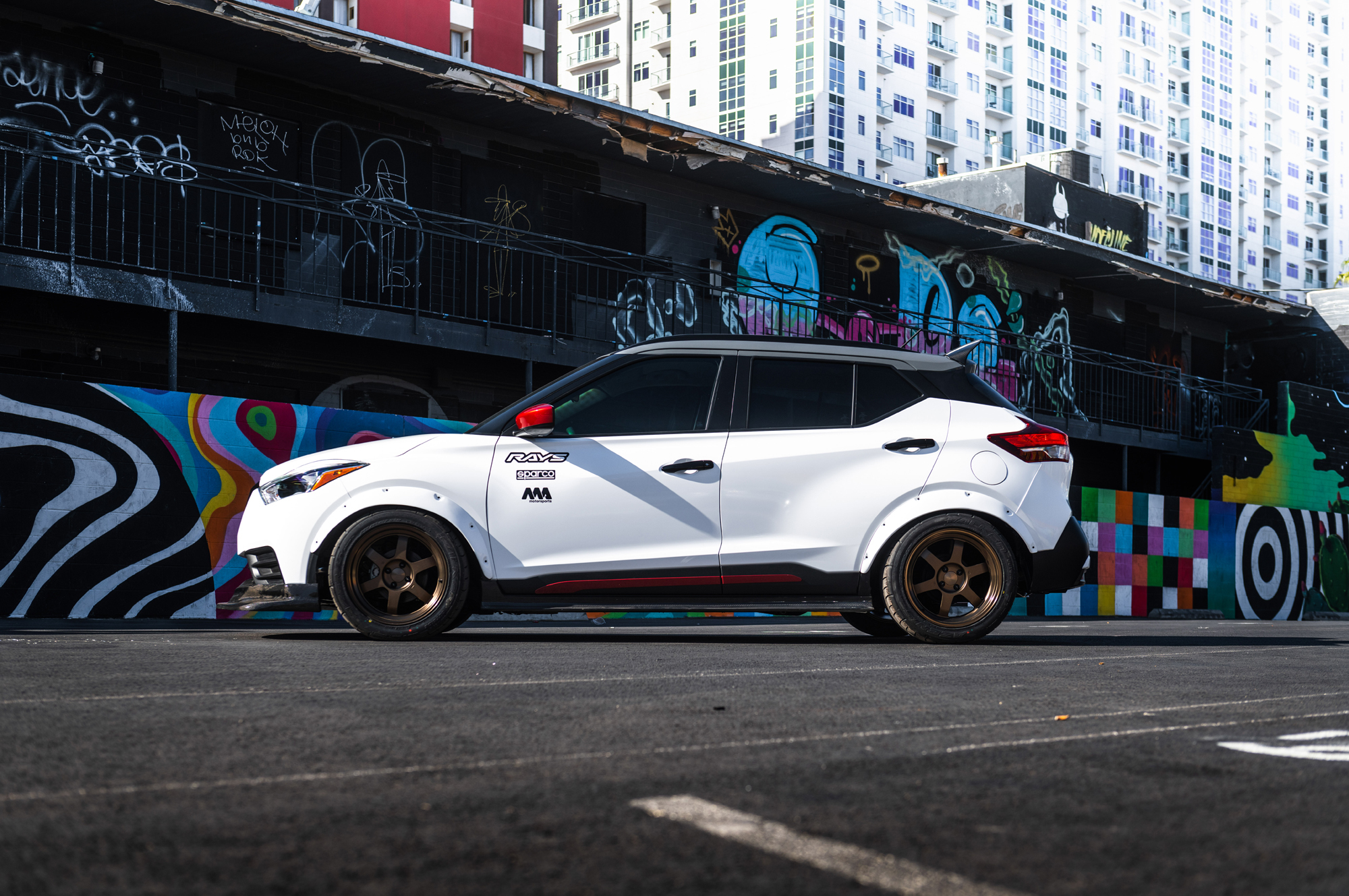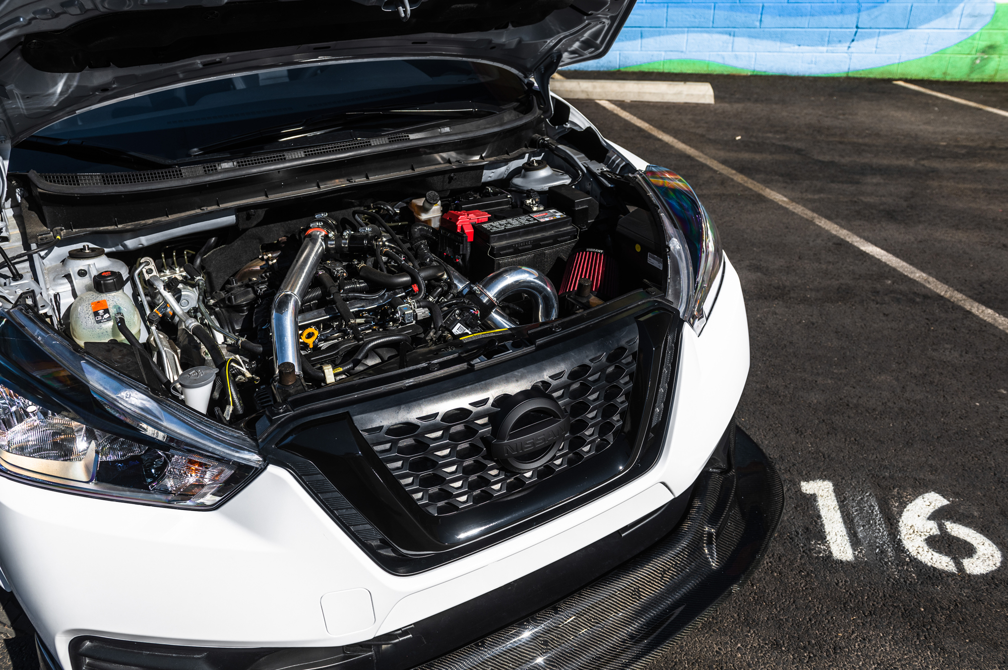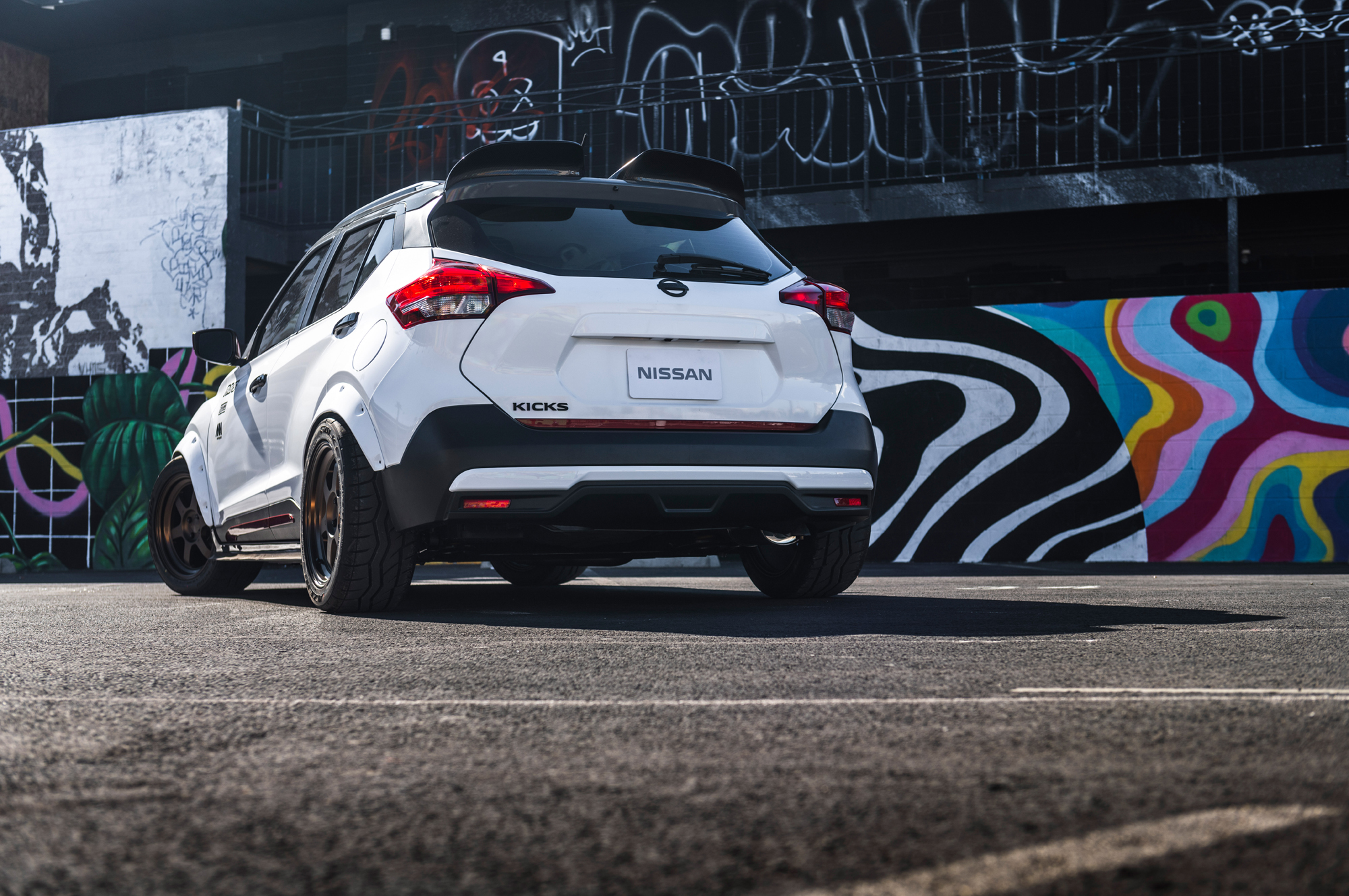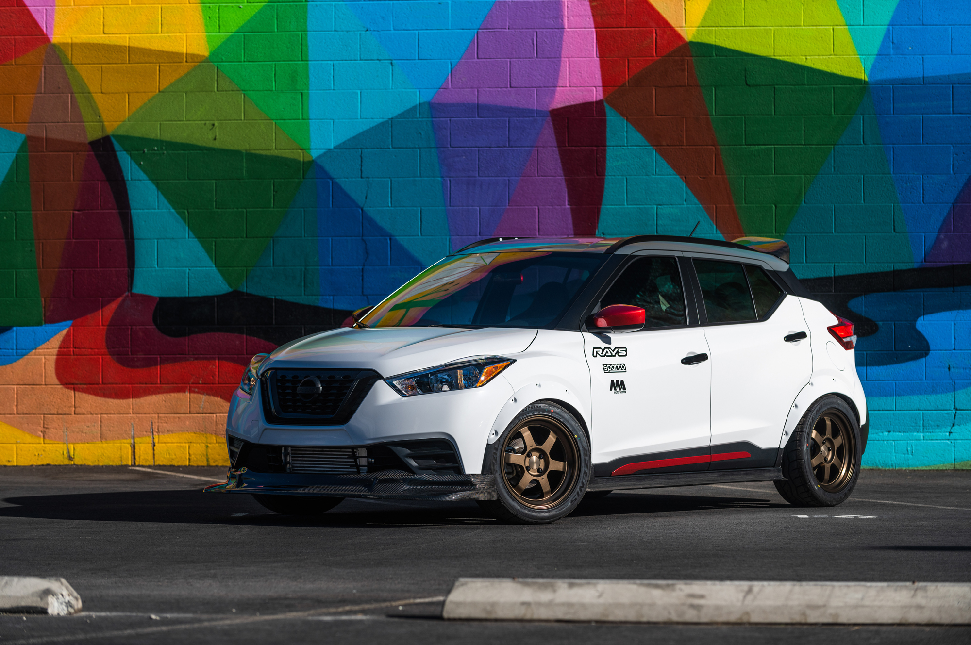 Компакт Kicks Street Sport явился на шоу эдаким городским забиякой, получив аэродинамические компоненты от фирмы 360 Composites, расширенные колёсные арки, подвеску с компонентами от Nismo и Ohlins, ковшеобразные сиденья Sparco SPX, колёсные диски Volk Racing TE37V с шинами Falken Azenis RT615K 245/45R17, а также необычную внешнюю окраску и графику от Speed Designs. Авторы шоу-кара позаботились и о моторе. Исходная «четвёрка» 1.6 обзавелась турбокомпрессором Garrett GT2255 и новым блоком управления. К сожалению, полученной отдачи компания не указала, а в исходнике было 124 л.с., 154 Н•м.
