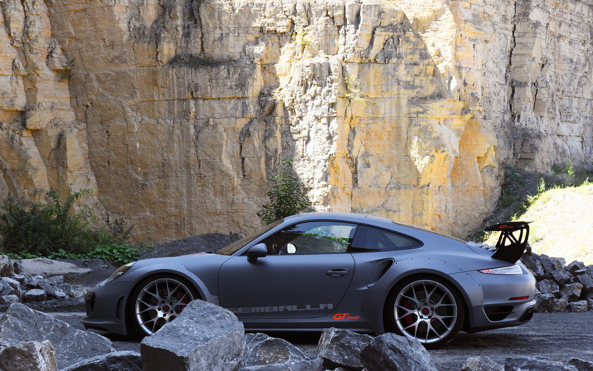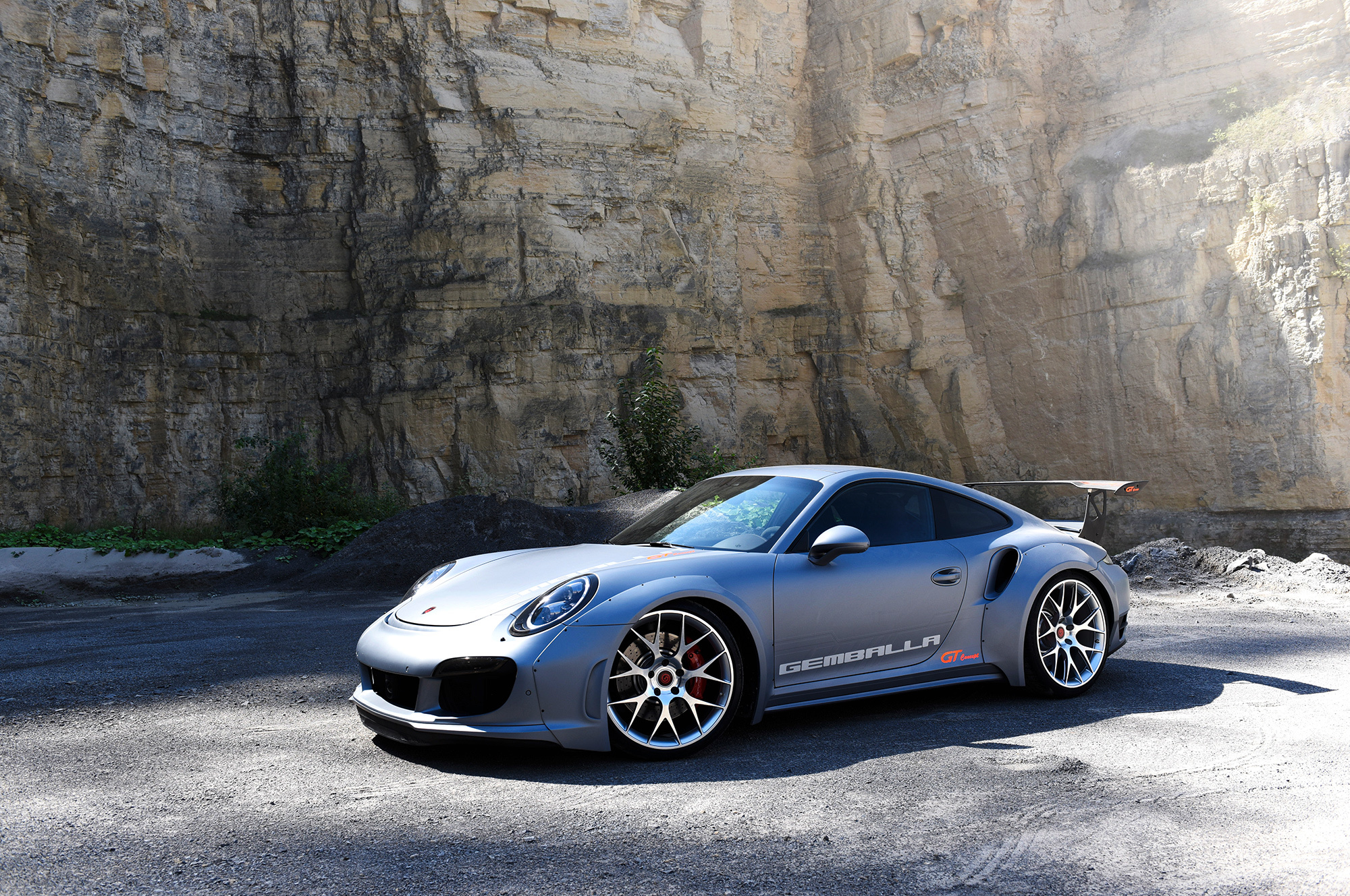 Немецкое тюнинг-ателье Gemballa сегодня выкатило на шоу SEMA в Лас-Вегасе переосмысленный спорткар Porsche 911 Turbo серии 991. «Оппозитник» 3.8 подвергся серьёзной модернизации: заменены системы впуска и выпуска, блоки управления, головки цилиндров, клапаны и фильтры. В результате двигатель выдаёт на 288 сил больше и прибавил 292 ньютон-метра, итого — 828 л.с., 952 Н•м. Концепт Gemballa GT разменивает сотню за 2,38 с вместо трёх секунд, максимальная скорость выросла с 320 до 360 км/ч.