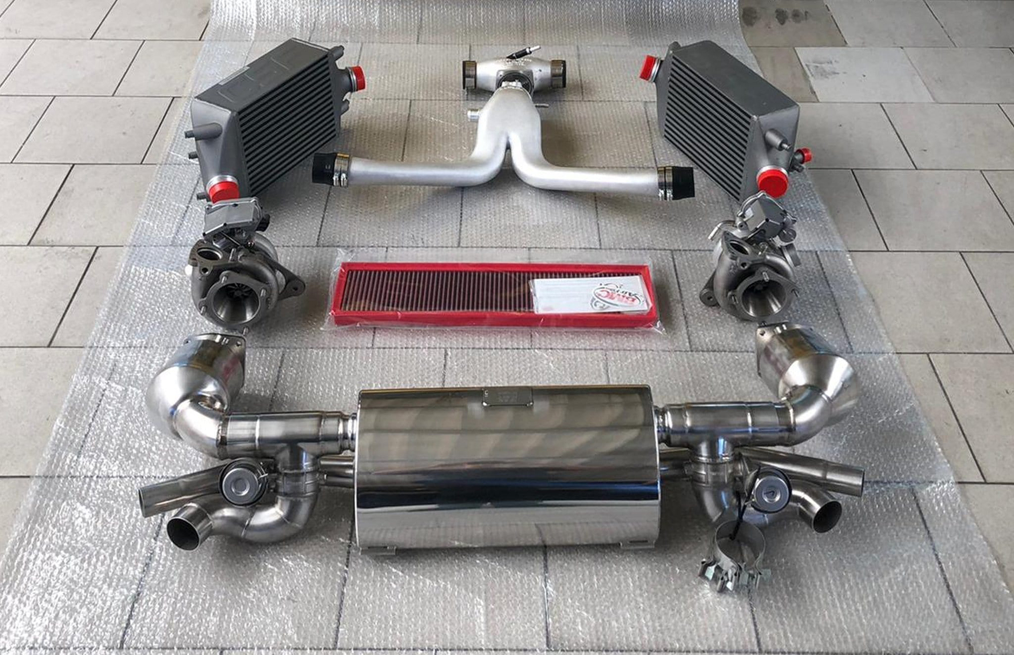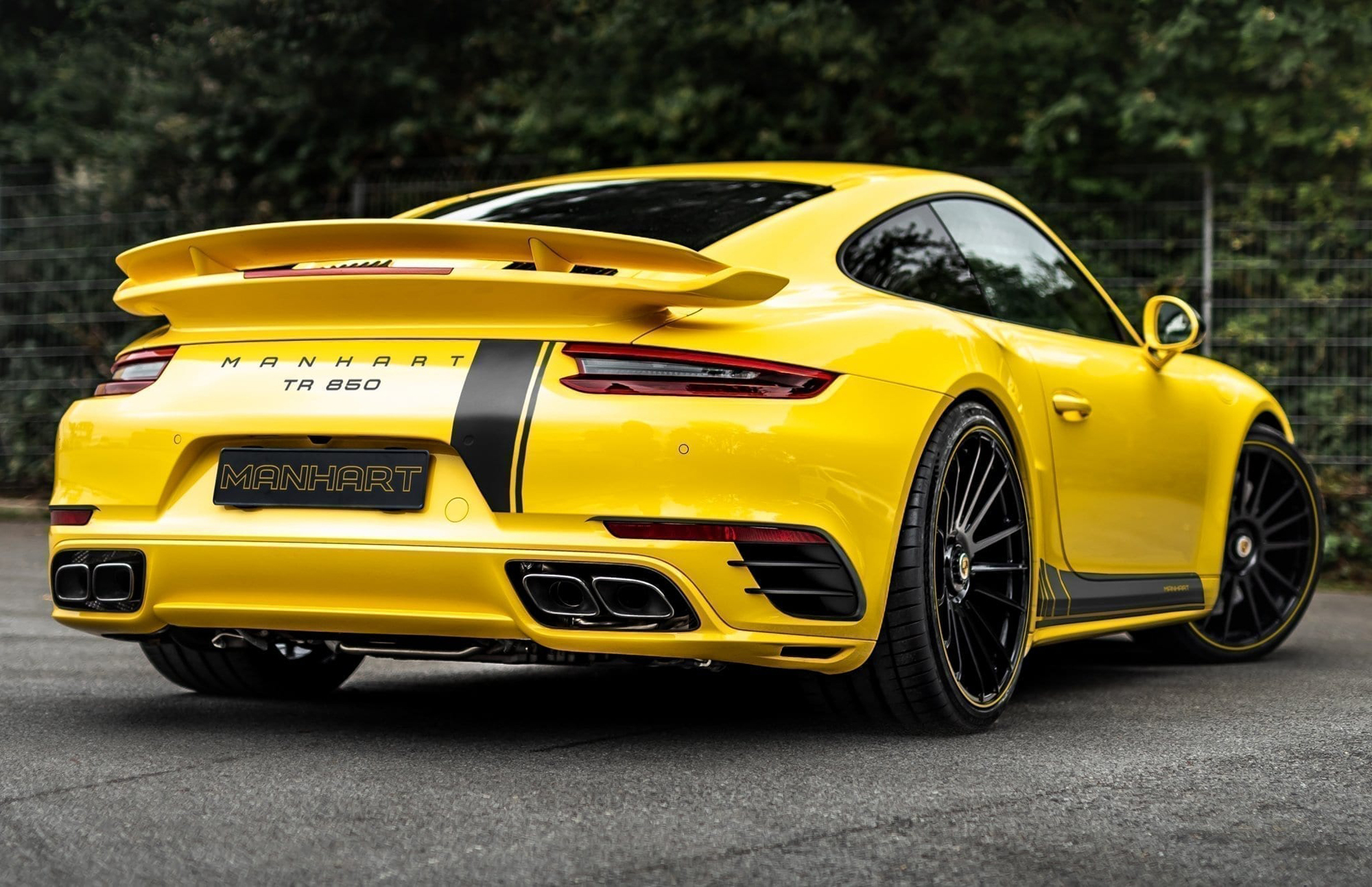 Увы, всё это великолепие доступно только за пределами Германии. Купе TR 850 предназначено лишь для экспорта, так как не имеет сертификата TÜV. А причина тому в выхлопной системе от Manhart. Она обладает пониженным противодавлением, оснащена глушителями из нержайвейки с переключаемым клапаном и по умолчанию идёт даже без нейтрализатора (небольшой нейтрализатор можно добавить как опцию). Зато обещано куда более впечатляющее, насыщенное и громкое звучание, чем на исходном Turbo S, чтобы оно соответствовало динамическому потенциалу перекроенного спорткара.