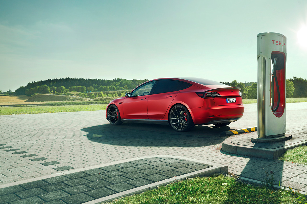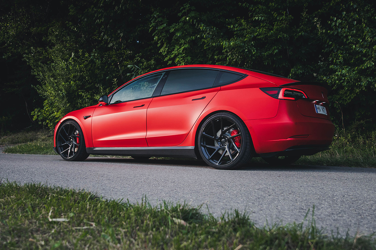 Компания Novitec придала более агрессивный облик электрическому седану Tesla Model 3. В ход пошли сплиттер, накладки на пороги, диффузор и спойлер, а также кованые колёсные диски диаметром 21 дюйм, созданные в кооперации с американской компанией Vossen. Для них, к слову, предлагается 72 цвета. Довершает набор занижение подвески на 30 мм или больше, если это необходимо.