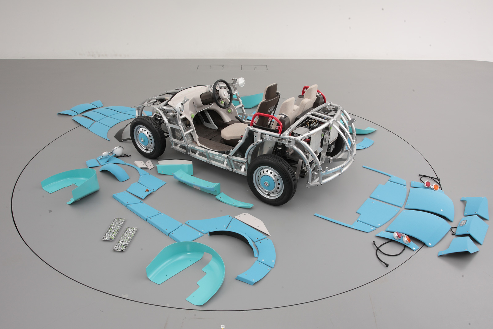 Вся машина, по замыслу японцев, представляет собой своего рода конструктор, в который родители могли бы играть вместе с детьми, «создавая свой идеальный автомобиль». Уже только это действие должно сближать два поколения, а ещё тут продумано расположение сидений. Ребёнок располагается за рулём, а его родители — сзади и по бокам. Так они могут вмешиваться в процесс обучения вождению малыша, перехватывая руль.